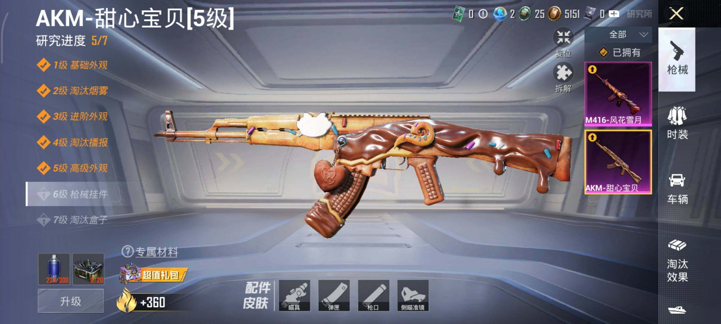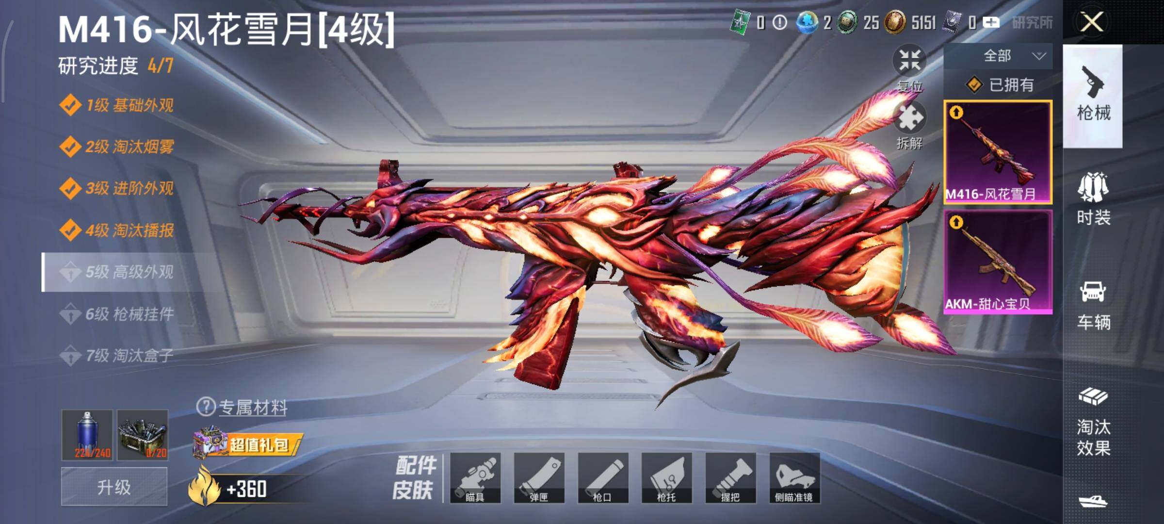 【粉色枪皮等级】:AKM-甜心宝贝(五级),M416-风花雪月(四级)