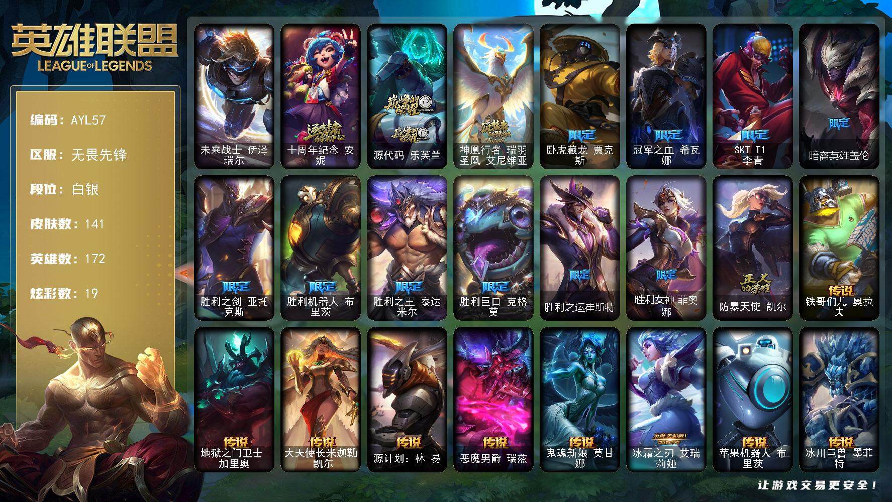 [15397880]店主推荐捡漏号!可直接换绑】白银段位-172英雄-141皮肤-19炫彩-1终极-3神话-11限定-16传说-39史诗