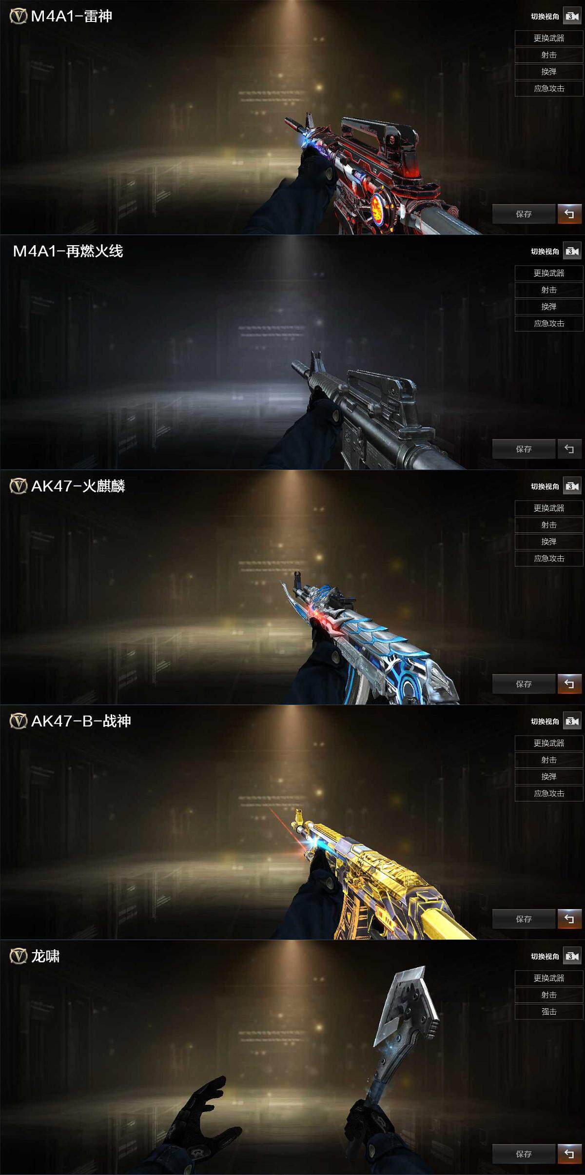 【皮肤】:雷神-暗月,M4A1-再燃火线,火麒麟-雷神,战神-流金岁月皮肤,轻型军用手斧-再燃火线