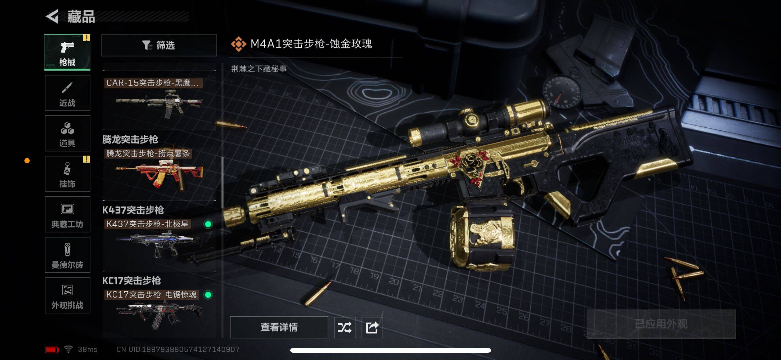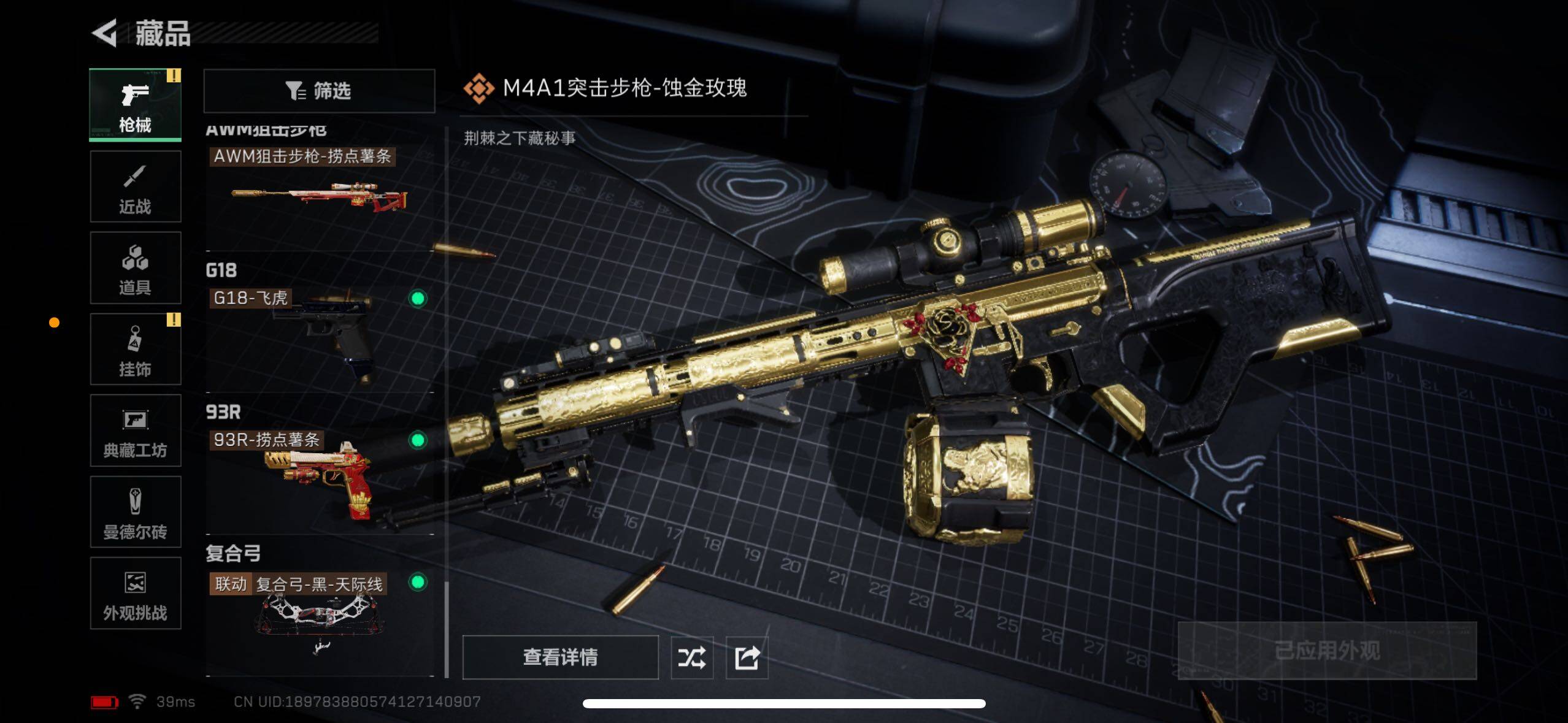 【传说外观】:M4A1突击步枪-蚀金玫瑰,M4A1突击步枪-阿米娅,ASh-12战斗步枪-鹅鸭杀,SG552突击步枪-运动员,AK-12突击步枪-夜鹰,AK-12突击步枪-特斯拉线圈,SCAR-H战斗步枪-启航,CAR-15突击步枪-黑鹰坠落,CAR-15突击步枪-阿米娅,腾龙突击步枪-捞点薯条,K437突击步枪-北极星,KC17突击步枪-电锯惊魂,UZI冲锋枪-特斯拉线圈,SMG-45冲锋枪-骑士,SR-3M紧凑突击步枪-特斯拉线圈,勇士冲锋枪-能天使-午夜邮差,QCQ171冲锋枪-北极星,QCQ171冲锋枪-鹅鸭杀,725双管霰弹枪-送葬人-无题密令,M250通用机枪-骑士之心,QJB201轻机枪-鹅鸭杀,M14射手步枪-电锯惊魂,AWM狙击步枪-捞点薯条,G18-飞虎,93R-捞点薯条,复合弓-黑·天际线