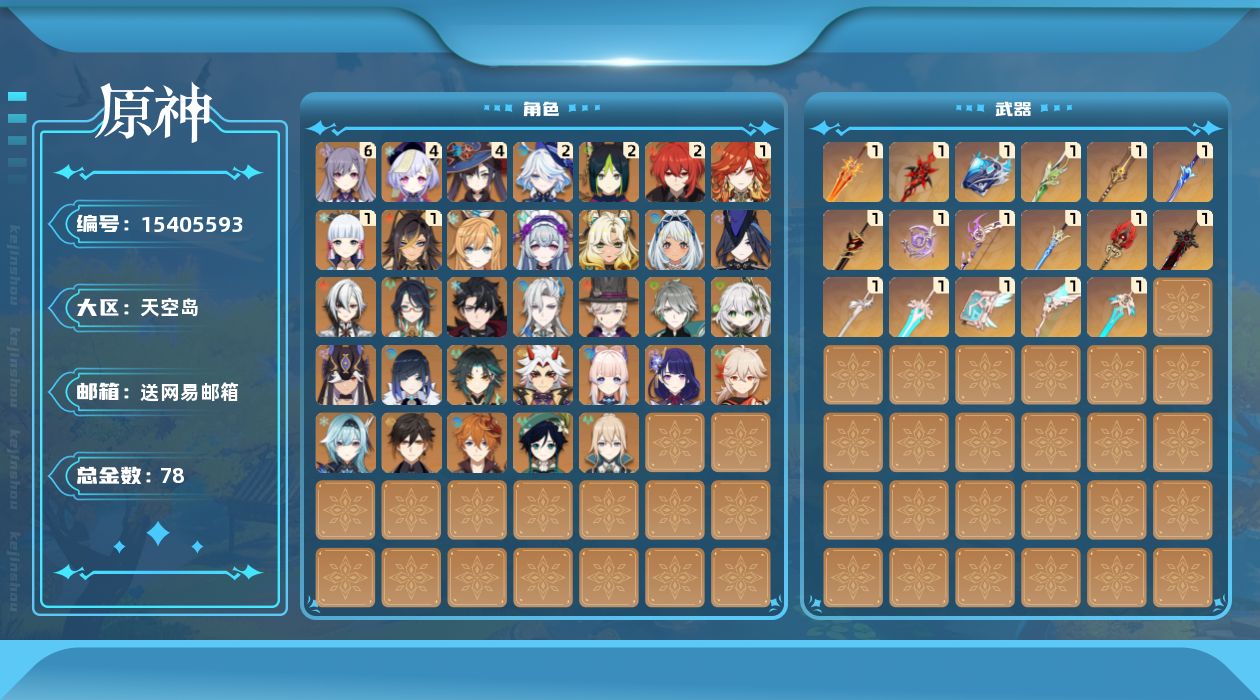 [15405593]60级/78黄/男主/35个五星角色/20个五星武器