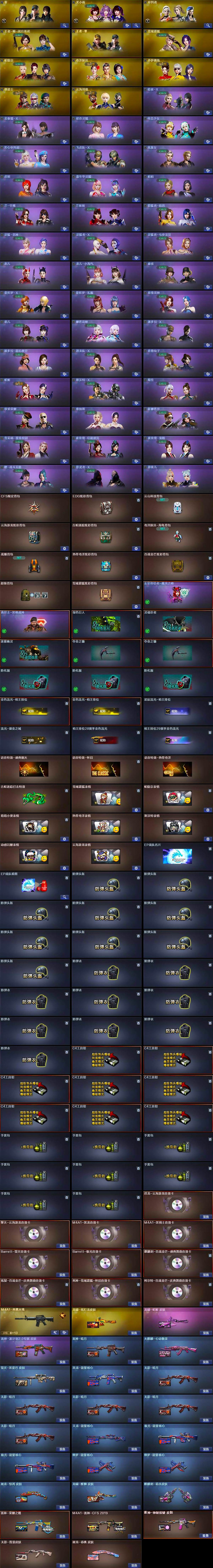【皮肤】:金色蔷薇-电竞之星 皮肤,雷神-暗月,雷神-荣耀之魄,M4A1-雷神-CFS 2019,雷神-源计划2.0专属 皮肤,M4A1-再燃火线,雷神-神秘按键 皮肤,火麒麟-心动糖果,毁灭-黑曼巴 皮肤,毁灭-英雄计划 皮肤,黑龙-能量核心,无影-暗月*5,无影-霓裳皮肤,天龙-能量核心,极光-能量核心*2,修罗-能量核心*2,屠龙-春桃 皮肤,屠龙-惊鸿 皮肤,龙啸-纸灯龙皮肤,龙啸-醒狮 皮肤,龙啸-蛇姬 皮肤,轻型军用手斧-再燃火线,麒麟刺-萌杀皮肤