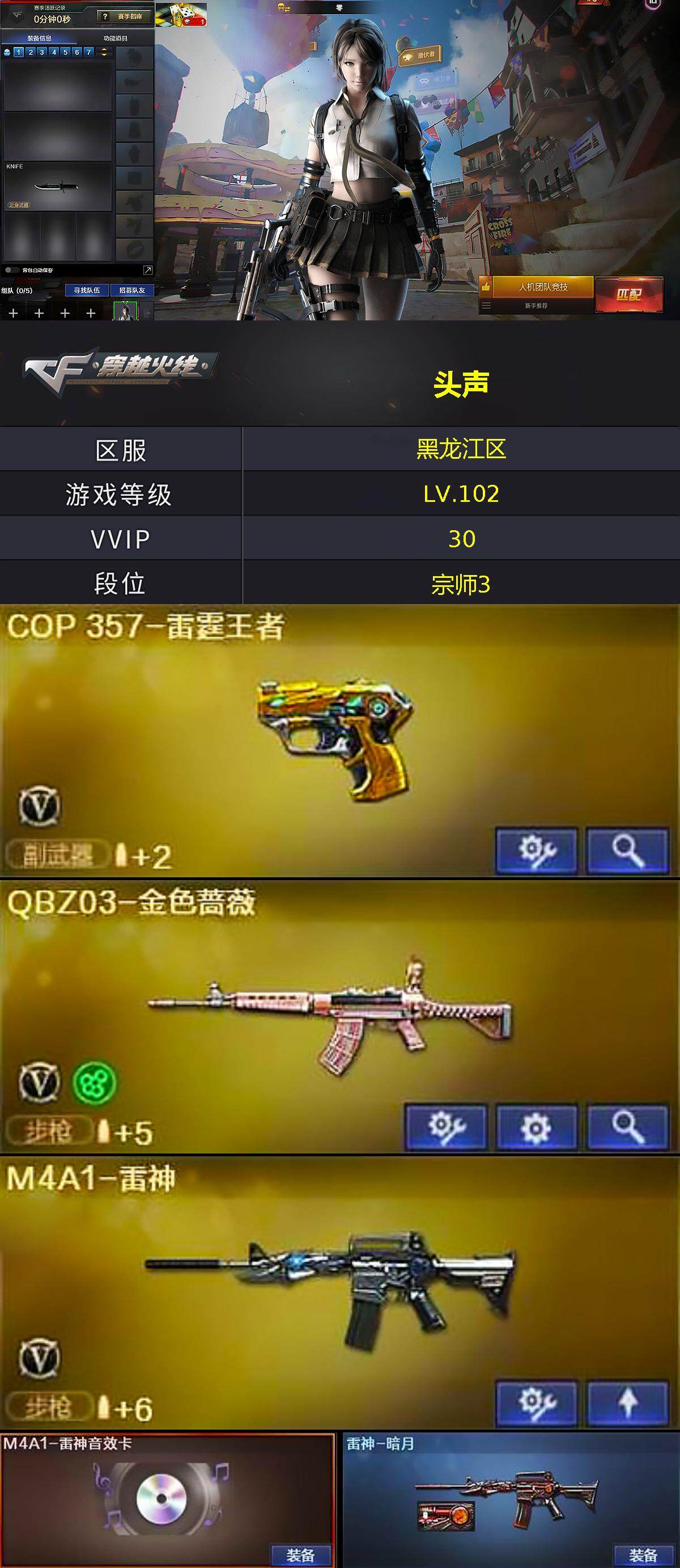 - [15249957]黑龙江区-65V-0王者-2炫金 【热门武器】:QBZ03-金色蔷薇*2,M4A1-青龙,死亡之眼,M4A1-黑骑士,加特林-炼狱,羊驼玩偶,沙鹰-修罗*2 【王者炫金武器】:炫金千变,炫金修罗 【音效卡】:AK47-火麒麟音效卡,Barrett-碧霄极光音效卡,AWM-昌龙-怀旧音效卡 【皮肤】:幻神-电流骇客 皮肤,金色蔷薇-破浪逐光 皮肤,雷神-星空,雷神-维纳斯皮肤,雷神-源计划2.0专属 皮肤,火麒麟-雷神,火麒麟-心动糖果,黑龙-能量核心,黑龙-暗月,无影-能量核心,修罗-能量核心,屠龙-荣耀之锋,屠龙-星火燎原 【角色】:葵,战地猎狐,奇洋探员,乔伊教练,修道士,云海玲珑,暗夜-X,北极狐-X,初恋灵狐,风暴女,虎妞,嘉年华灵狐,娟娟,葵-赛博朋克,灵狐者-X,龙儿-小淘气,麻雀,曼陀罗-X,女主播,潘多拉-X,邱刚敖,青霞仙子,蛇姬,斯沃特-X,甜心偶像,蜀雪,铁骑荣耀,维纳斯,雪莉杨,雪莉杨-摸金校尉,夜玫瑰-宠粉 【人偶武器】:AWM-灵狐-15周年嘉年华,海滩汪汪-巴雷特,M37-葵,迷你波特博士,迷你巨石泰坦-魔花研究所 【暴走生化】:死亡之眼,超级对讲机 【挑战大师】:冰龙粉碎者-白马银枪,神圣爆裂者-末日III 【英雄级武器】:AK47-火麒麟*2,M4A1-黑龙,M4A1-雷神*2,M4A1-黑骑士,AK47-无影,M4A1-死神,AK47-黑武士,AK12-天启,M4A1-龙血,M4A1-青龙,M4A1-神工天巧,无影-神兵利器,黑武士-锦绣游龙,FAMAS G2-天戎,QBZ03-金色蔷薇*2,AWM-天龙,Barrett-毁灭,AWM-裁决,VSK-94-金蚀,加特林-炼狱,沙鹰-修罗*2,沙鹰-天神*2,COP 357-云龙,屠龙*4,龙啸,擎天,麒麟刺,唐刀-神工天巧,高爆手雷-幻灵*2,高爆手雷-竞技荣光,高爆手雷-神工天巧*4,高爆手雷-云龙,手雷-热带奇洋,高爆手雷-古蛇迷踪,高爆手雷-玄豹,闪光弹-幻灵*3,闪光弹-竞技荣光,闪光弹-神工天巧*2,闪光弹-云龙*2,闪光弹-玄豹,烟雾弹-幻灵,烟雾弹-神工天巧*3,烟雾弹-云龙,烟雾弹-古蛇迷踪,烟雾弹-玄豹,M4A1-赤狱骑士,AWM-昌龙*2,Barrett-碧霄极光 【道具】:CFS限定背包,亚洲杯纪念炫彩背包,全能枪王背包,奇洋探员-海龟背包,炫彩背包,背包-