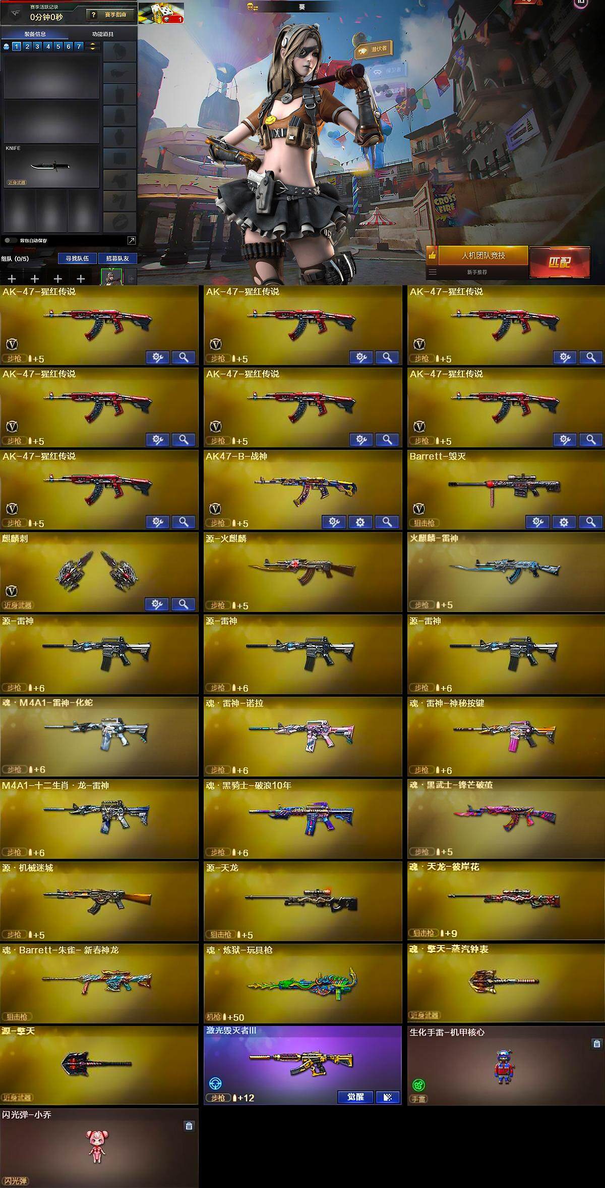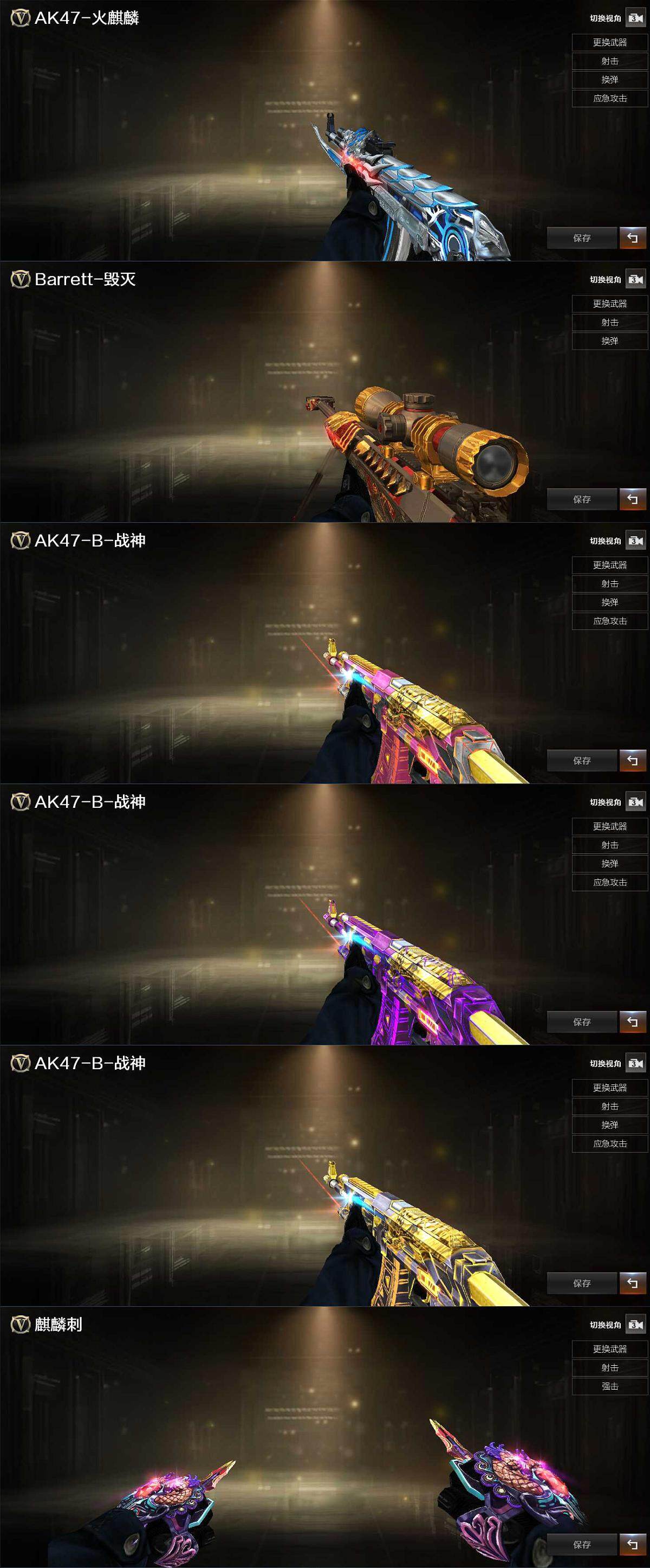 【英雄级武器】:AK-47-猩红传说*7,AK47-B-战神,Barrett-毁灭,麒麟刺