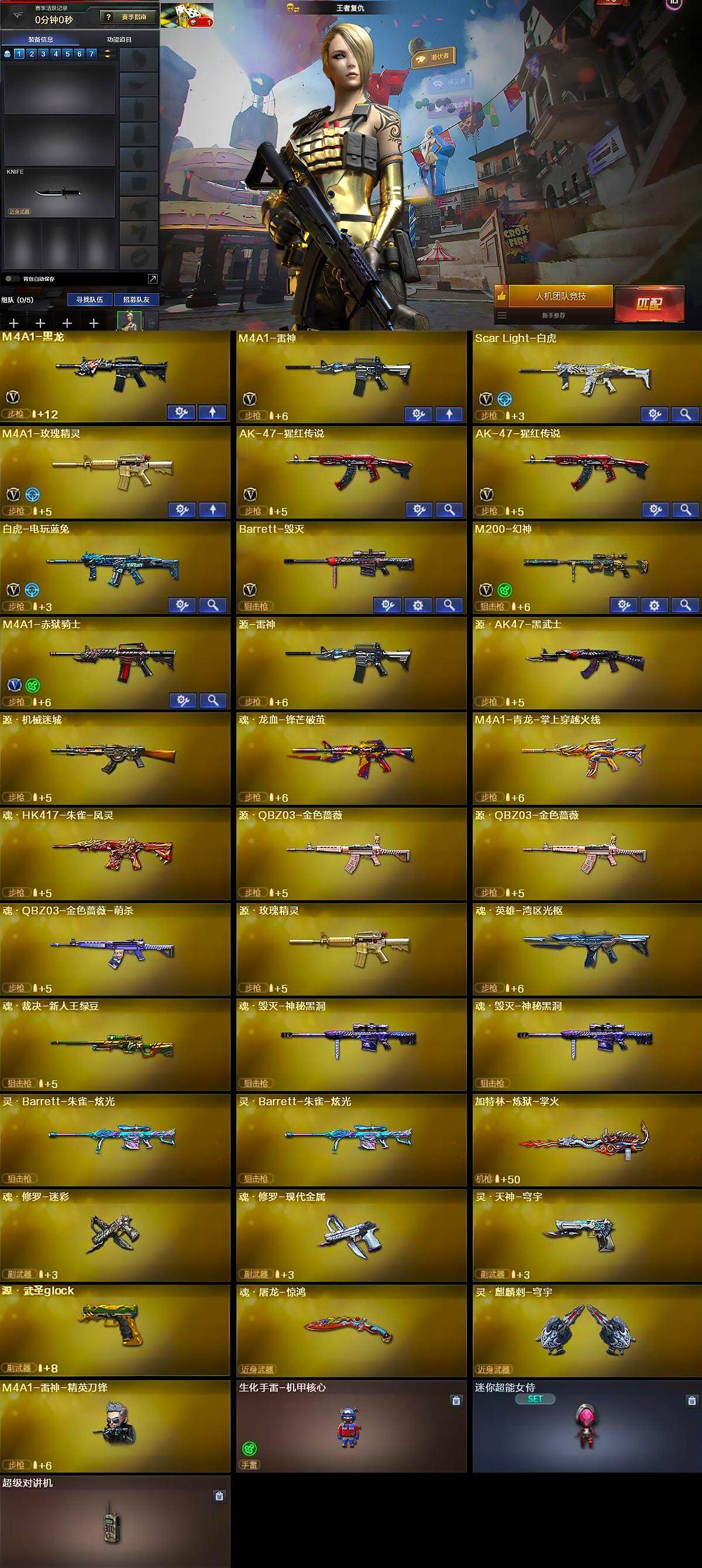 【皮肤】:Scar Light-白虎-暗星,雷神-暗月,M4A1-战神赵云,毁灭-暗月,毁灭-英雄计划 皮肤,战神-粉色甜心皮肤,AK47-B-常胜将军-刘备,AK47-B-常胜将军-孙权*2