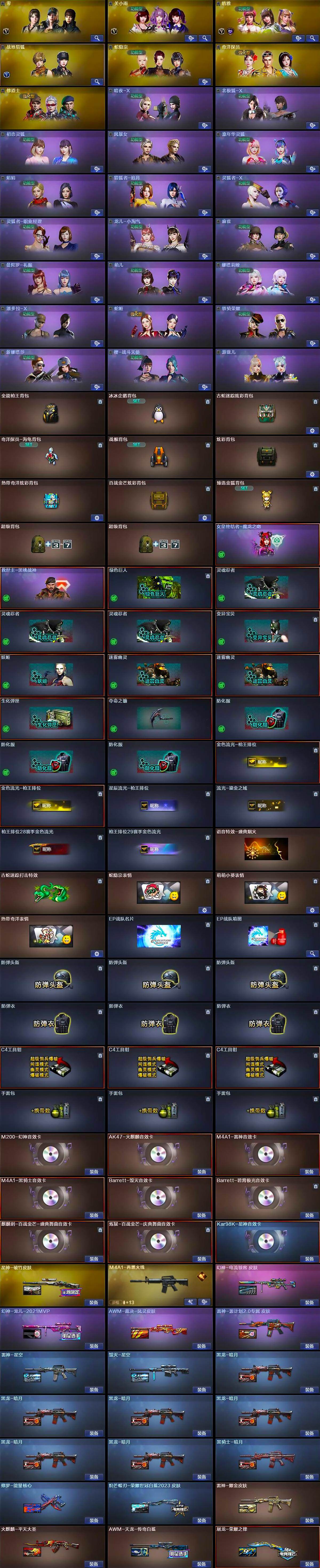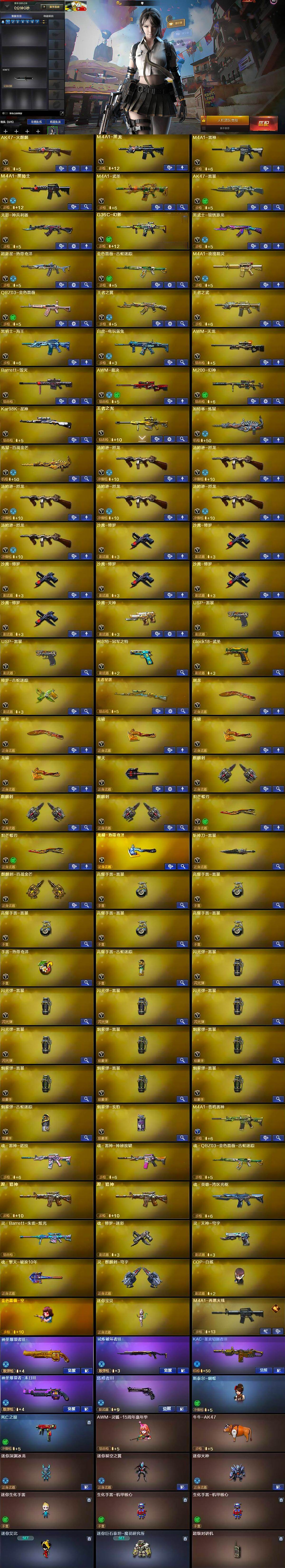 【热门武器】:G36C-幻影,QBZ03-金色蔷薇,M200-幻神,金色蔷薇-古蛇迷踪,修罗-古蛇迷踪,死亡之眼,白虎-电玩蓝兔,柯尔特-冠军之特,Kar98K-星神,金色小号,牛牛-AK47,M4A1-黑骑士,汤姆逊-烈龙*6,加特林-炼狱,金色蔷薇-空,斯泰尔-蝴蝶,COP-白鲨,USP-雷暴*2,沙鹰-修罗*6,炽芒蝶刃*2,炽芒蝶刃-荣耀世冠白鲨2023 皮肤,金刚伞