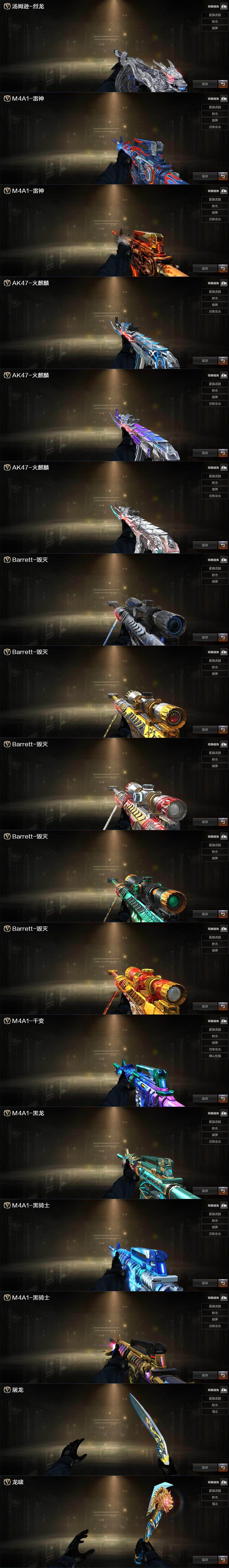 【音效卡】:AK47-火麒麟音效卡,M4A1-黑骑士音效卡,Barrett-毁灭音效卡