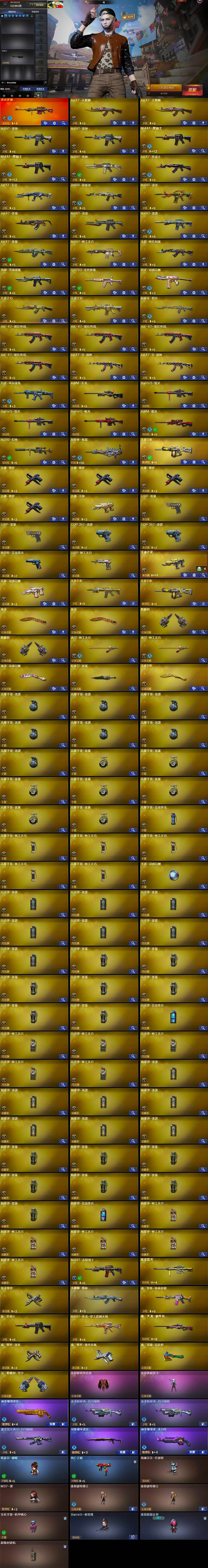 【热门武器】:传说梦魇,QBZ03-金色蔷薇,M200-幻神,死亡之眼,白虎-电玩蓝兔,M4A1-黑骑士*2,加特林-炼狱,斯泰尔-蝴蝶,USP-雷暴*2,沙鹰-修罗*4
