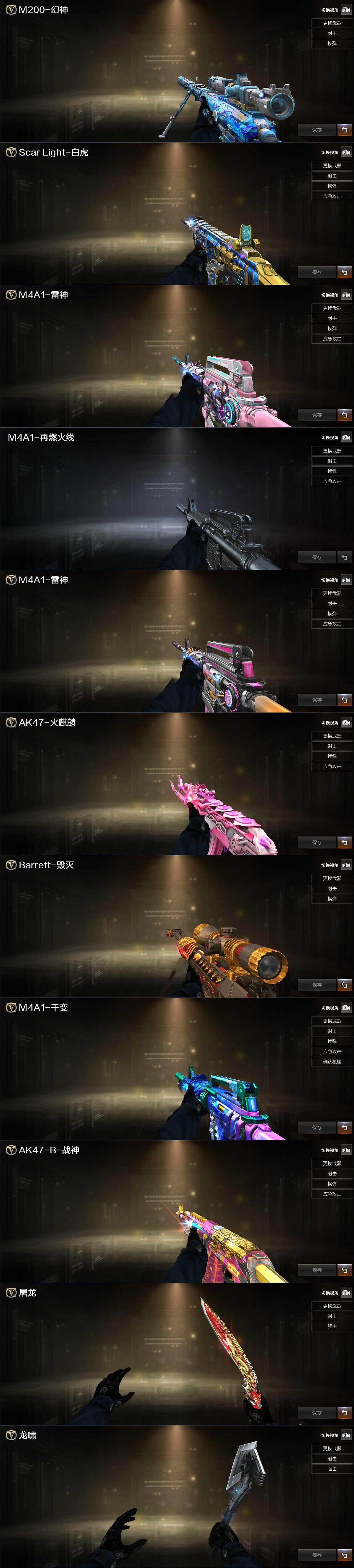 【热门武器】:Scar Light-白虎,M200-幻神,死亡之眼,加特林-炼狱,COP-堕天神,沙鹰-修罗*2