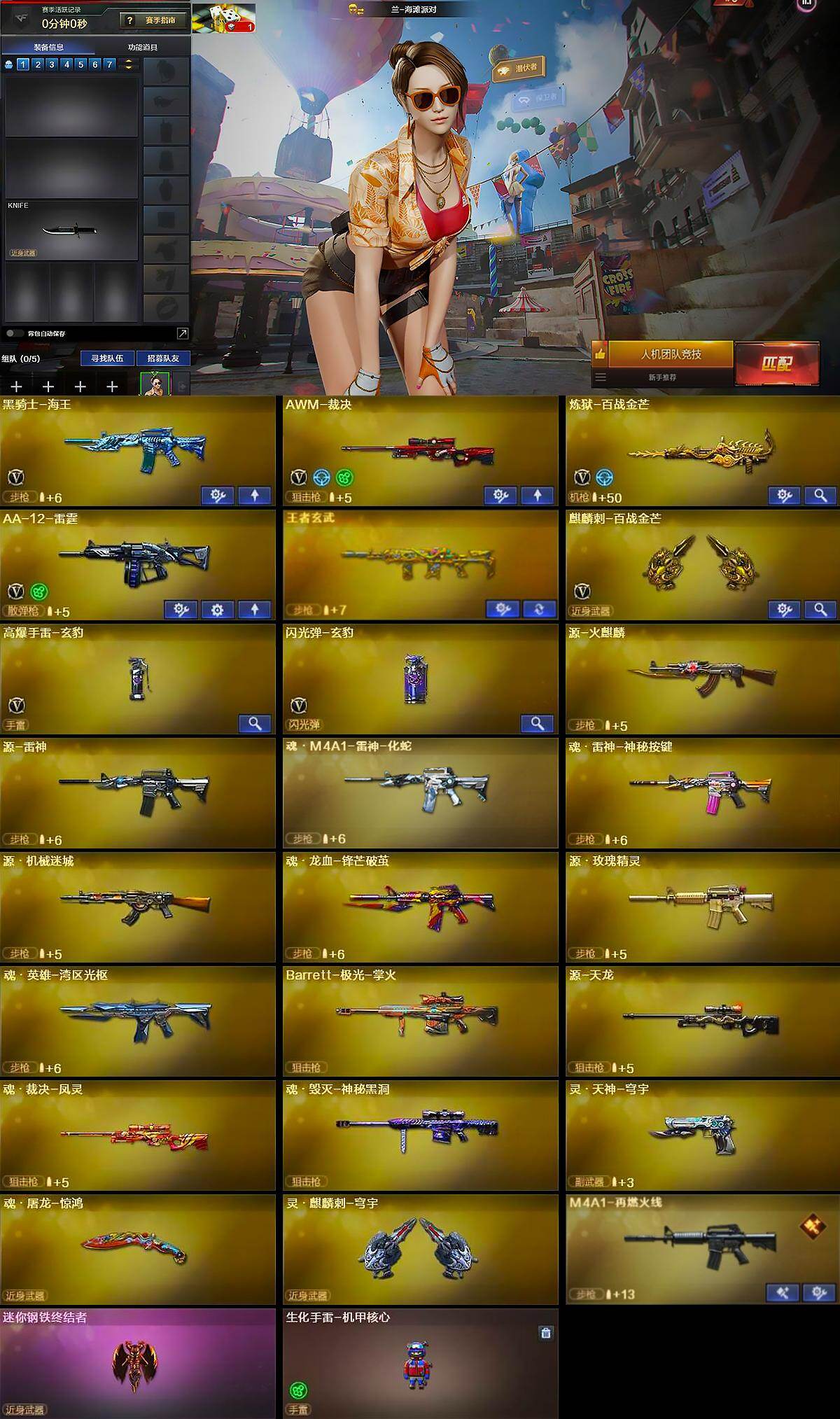 - [13054772]实名: 可修改 时装数: 390 枪械数: 102 战备数: 100 热门装扮: 彩虹鹿灵,无畏白羊,莲影清波,蜜语绒猫,美雪,美琪,小蓝 稀有枪皮: M24莲影清波,Kar98K-巳巳如意