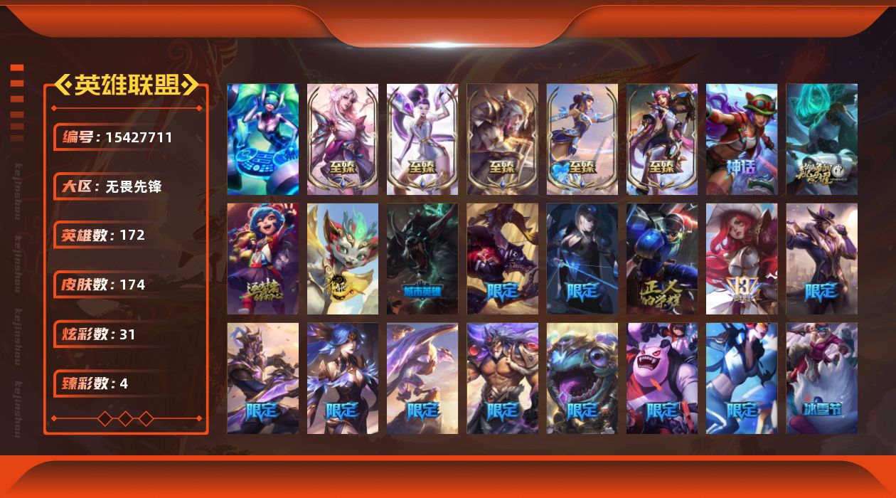 [15427711]可二次【特价出售/店主推荐】铂金段位-172英雄-174皮肤-31炫彩-1终极-9神话-19限定-25传说-43史诗