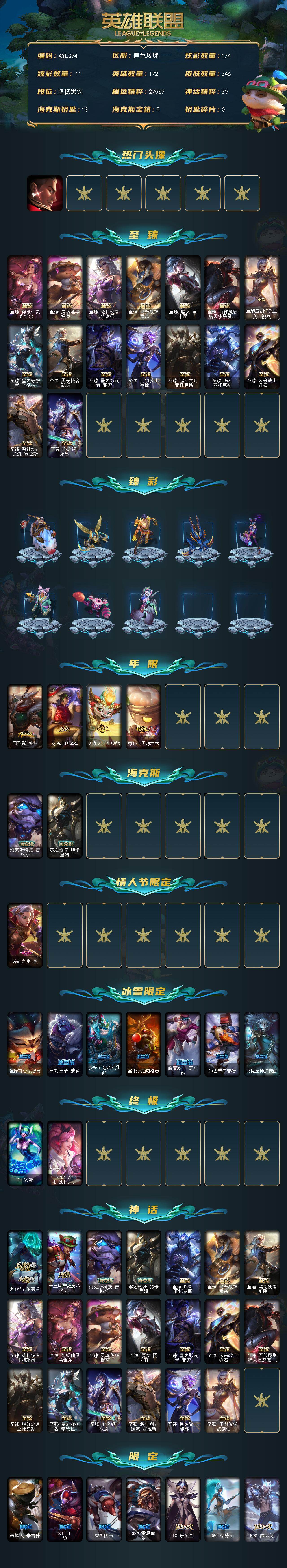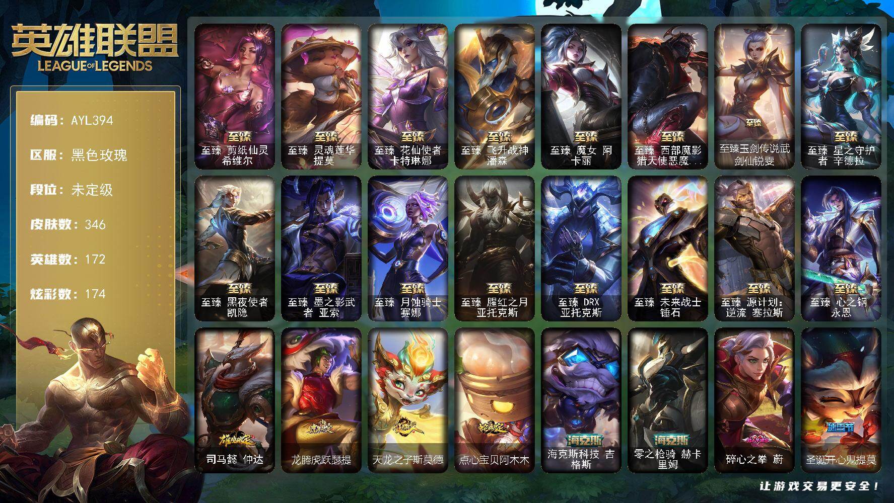 [15430456]【特价出售/店主推荐】未定级段位-172英雄-346皮肤-174炫彩-4终极-20神话-39限定-36传说-62史诗