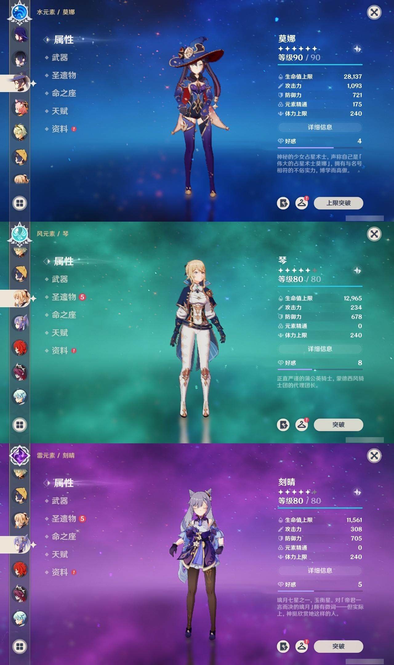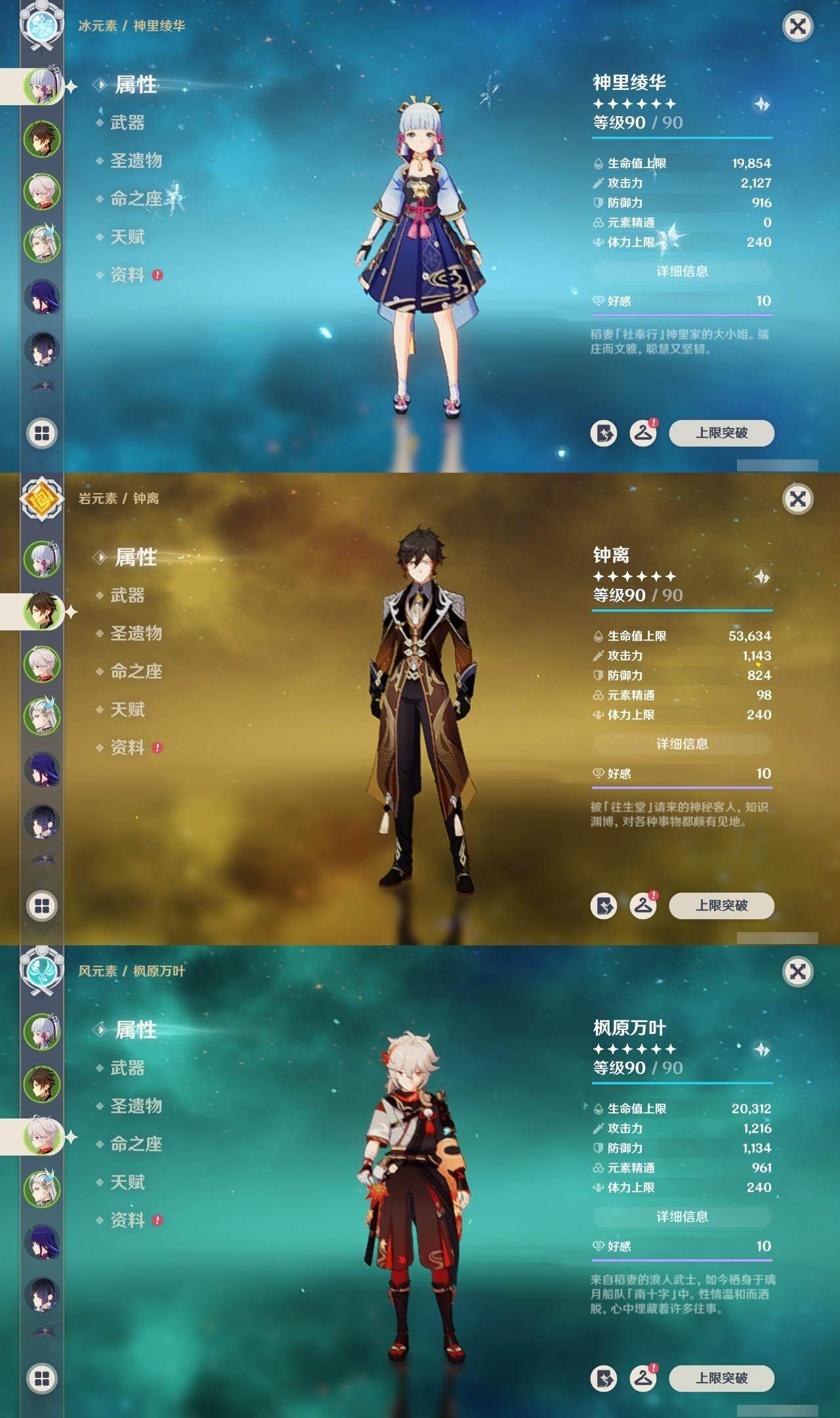 神里凌华,钟离,枫原万叶,雷电将军,莫娜,琴,刻晴,迪卢克,七七