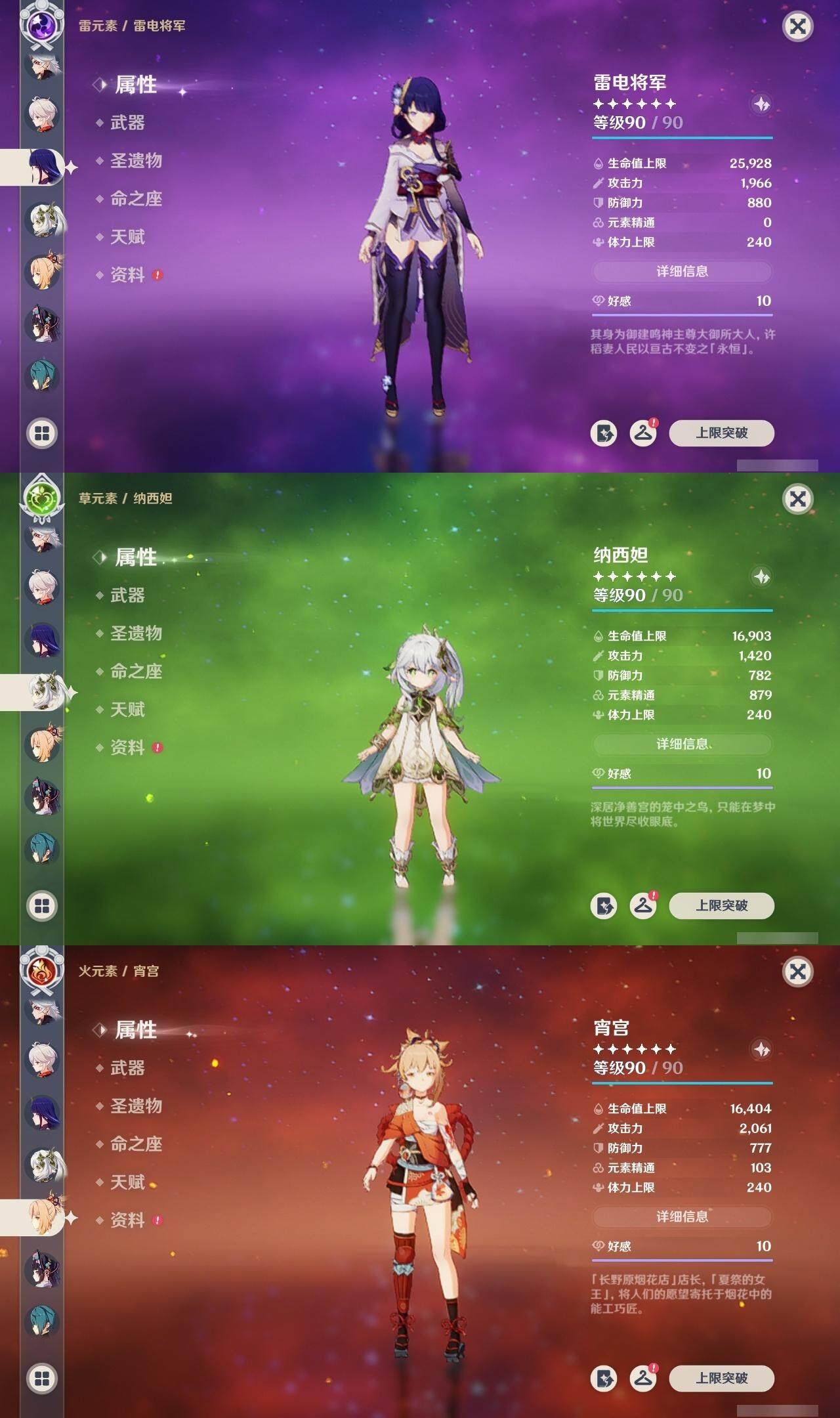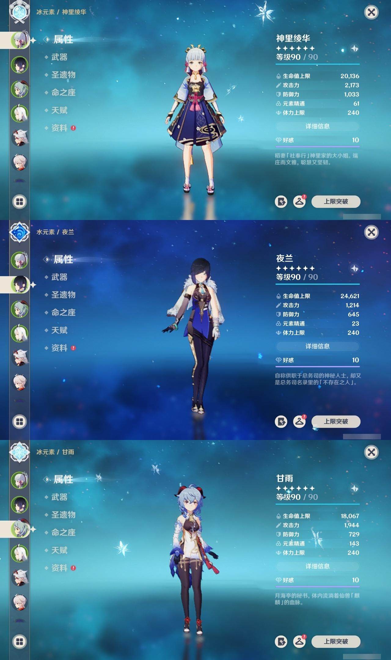神里凌华,甘雨,申鹤,荒泷一斗,枫原万叶,雷电将军,宵宫,琴,珊瑚宫心海,八重神子,莫娜,七七,刻晴,迪卢克
