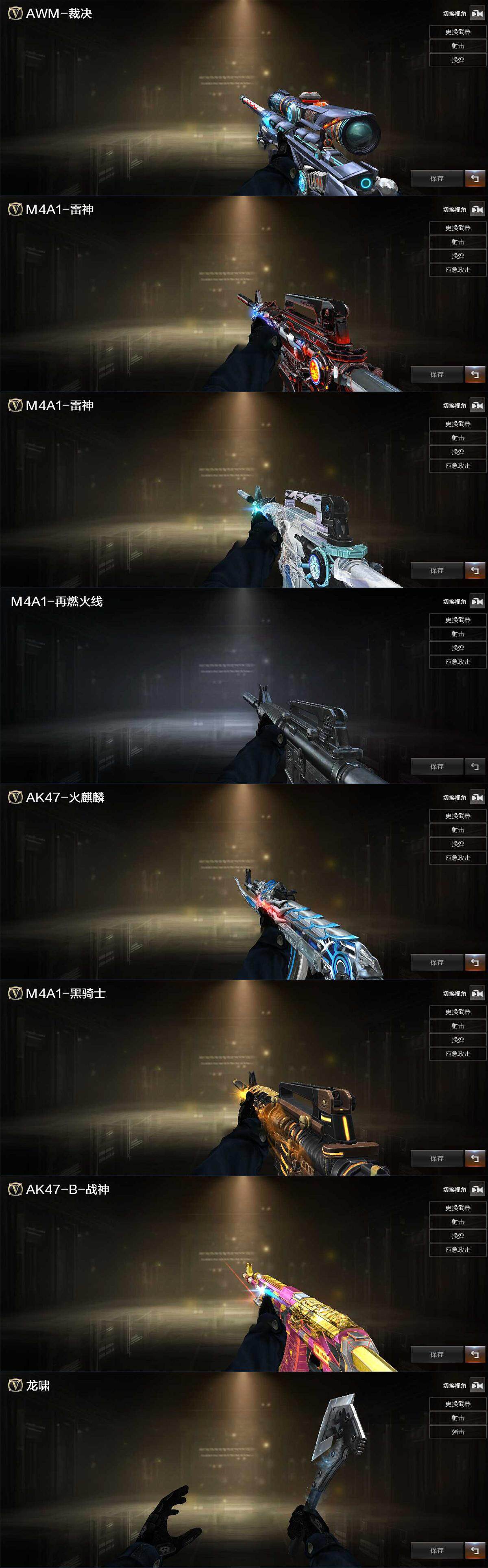 【皮肤】:裁决-羽掣 皮肤,雷神-暗月,雷神-化蛇 皮肤,M4A1-再燃火线,火麒麟-雷神,黑骑士-典雅胡桃 皮肤,战神-粉色甜心皮肤,屠龙-破浪逐光 皮肤,轻型军用手斧-再燃火线
