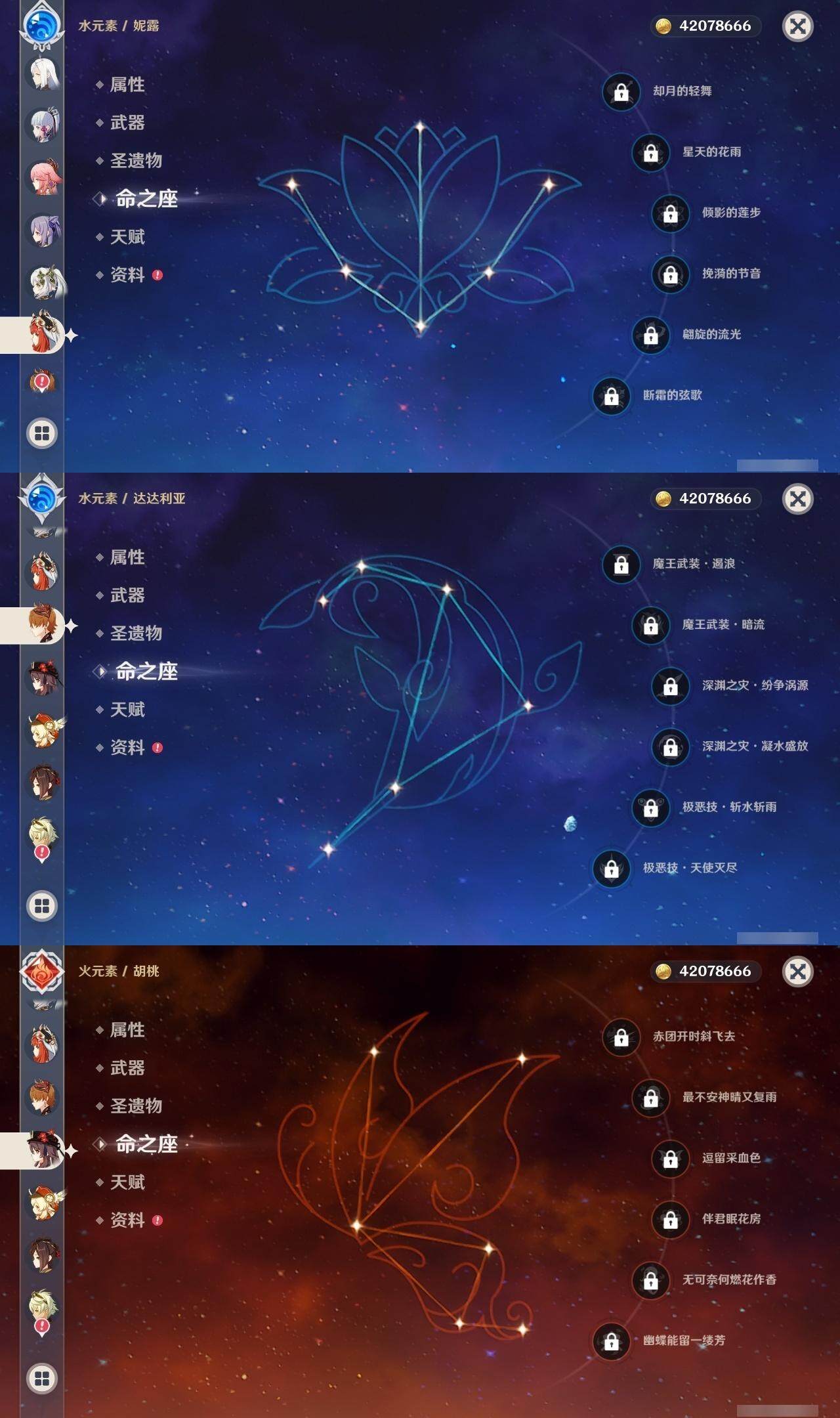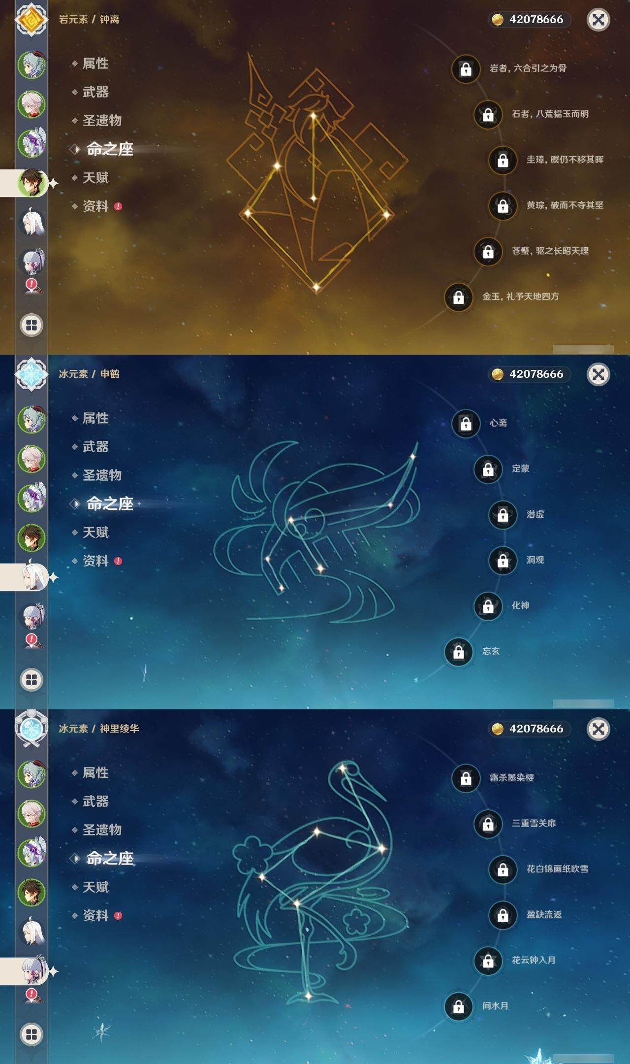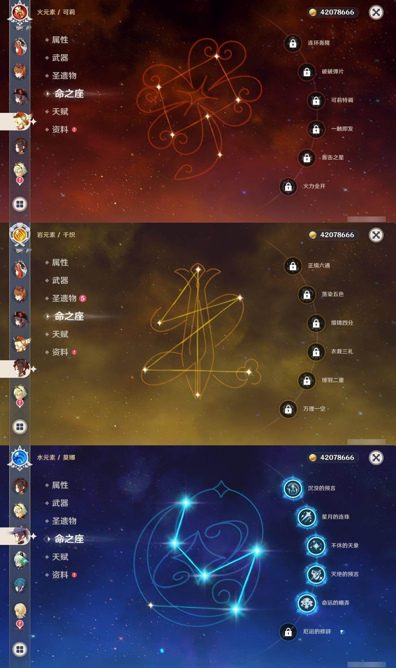 - [15261052]56级/19黄/女主/12个五星角色/5个五星武器 0命阿蕾奇诺,0命妮露,0命夜兰,0命雷电将军,0命钟离,0命胡桃,0命魈,0命宵宫,0命温迪,0命刻晴,2命莫娜,0命迪卢克,精1最初的大魔术,精1和璞鸢,精1天空之脊,精1阿莫斯之弓