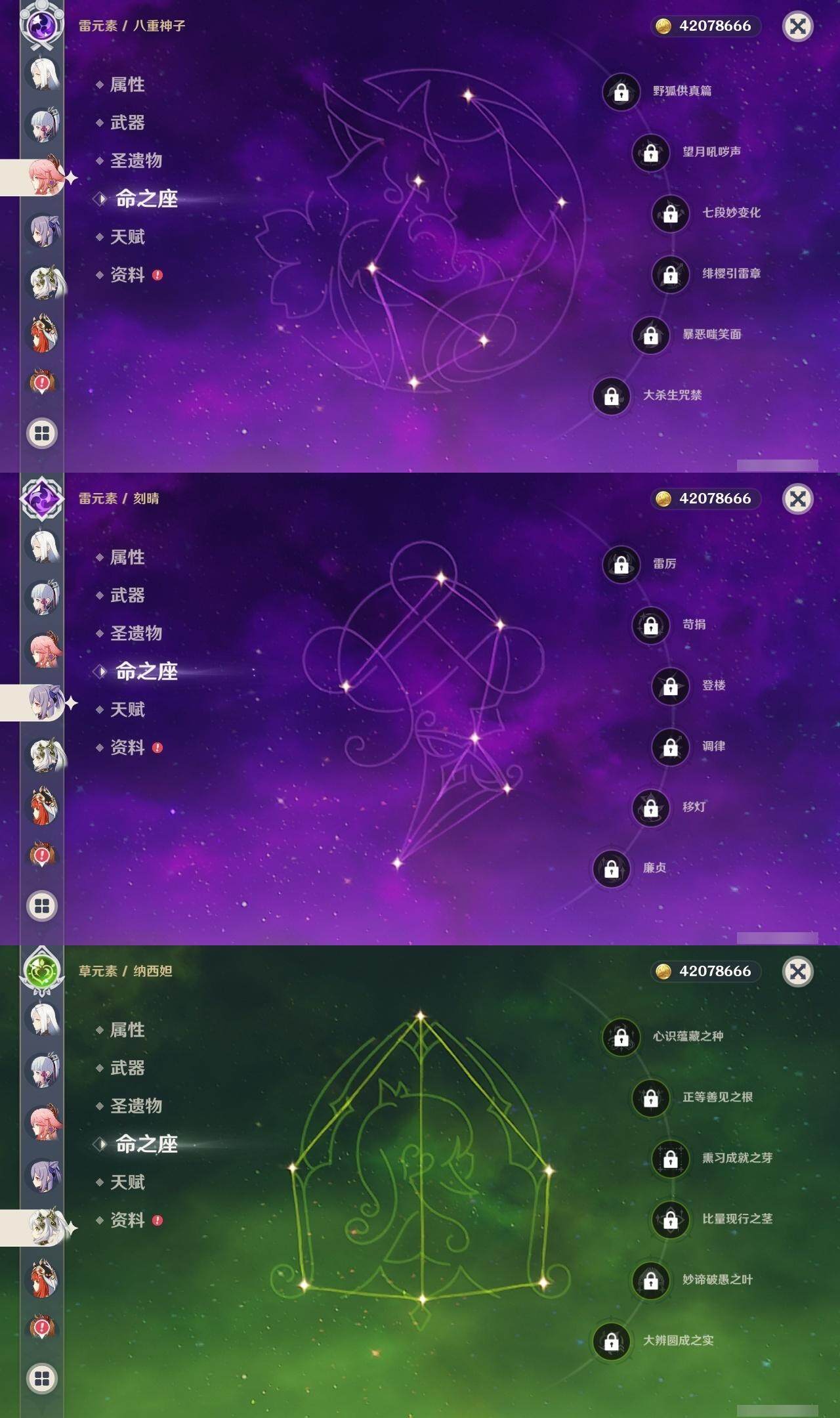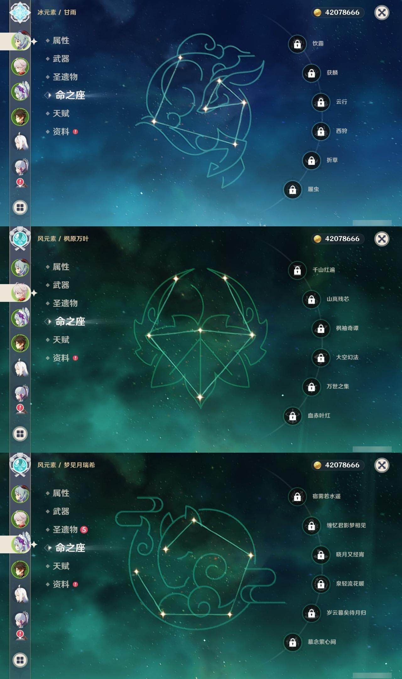 0命千织,0命闲云,0命芙宁娜,0命纳西妲,0命妮露,0命提纳里,0命八重神子,0命申鹤,0命枫原万叶,0命神里绫华,0命钟离,0命胡桃,0命甘雨,0命可莉,0命达达利亚,0命刻晴,3命七七,5命莫娜,0命迪卢克,0命梦见月瑞希,精1神乐之真意,精1不灭月华,精1飞雷之弦振,精1雾切之回光,精1无工之剑,精1护摩之杖,精1天空之脊,精1风鹰剑