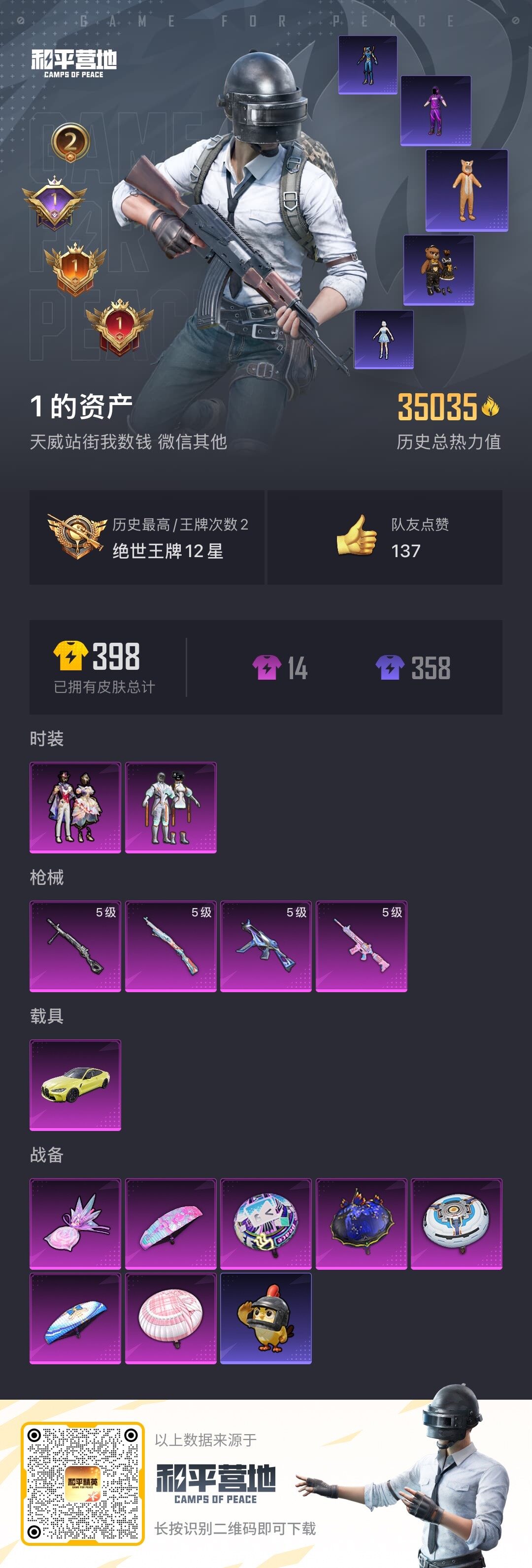 [15445065]地铁满天赋【特价出售/店主推荐】 安卓 微信-2粉装-4特效枪-1载具-1粉色飞行器-35035热力值-2王牌印记-108套装-105枪皮【热门品类】:套装-浪漫天命,套装-小丑鱼,套装-龟仙人,套装-暗影哥特,套装-浪漫波比,角色-Mark.06【粉色套装】:粉装-智能音符,粉装-星穹咏叹调【粉色枪皮等级】:M416-电玩时刻(五级),UMP45-量子极限(五级),Kar98K-巳巳如意(五级),DP-28-豹影疾电(五级)【粉色载具】:宝马M4(圣保罗黄)【粉色枪皮】:M416-电玩刻,UMP45-量子极限,Kar98K-巳巳如意,DP-28-豹影疾电