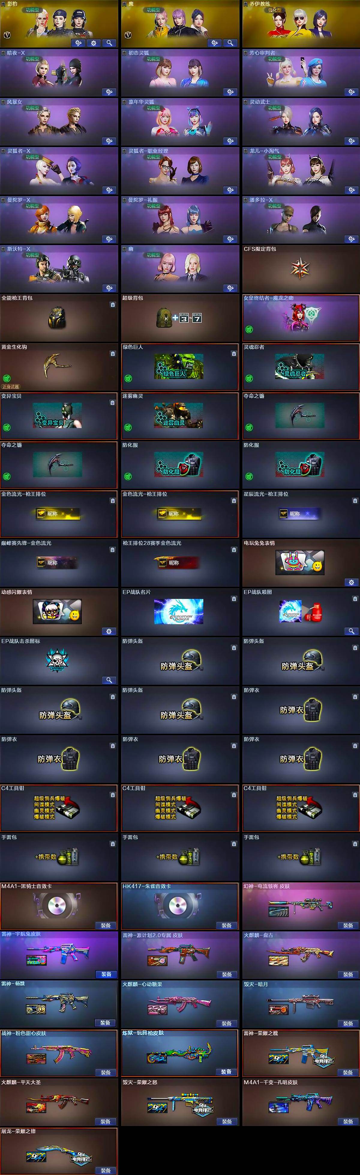 - [12945261]上海一区-38V-23王者-0炫金 【热门武器】:金色蔷薇-古蛇迷踪,修罗-古蛇迷踪,M200-竞技荣光,M4A1-黑骑士,COP 357-幻灵,沙鹰-修罗*2 【王者炫金武器】:雷霆王者之锋 【稀有皮肤】:雷神-能量核心,雷神-虎将,火麒麟-平天大圣,天龙-能量核心,天神-暗月*2 【角色】:葵,炫,幽,电竞教官-云悠悠 【人偶武器】:AWM-灵狐-15周年嘉年华 【暴走生化】:超级对讲机 【英雄级武器】:M200-竞技荣光,柯尔特-竞技荣光,擎天-竞技荣光*3,高爆手雷-竞技荣光*3,烟雾弹-竞技荣光*6,闪光弹-竞技荣光*2,COP 357-幻灵,金色蔷薇-古蛇迷踪,无影-神兵利器,M4A1-雷神,M4A1-黑龙,M4A1-黑骑士,AK47-无影,AK47-火麒麟,AK12-天启,AWM-天龙,AK47-机械迷城,M4A1-赤狱骑士,修罗-古蛇迷踪,沙鹰-天神,沙鹰-修罗*2,麒麟刺,擎天,龙啸,屠龙*2 【特殊枪械】:1黑骑士