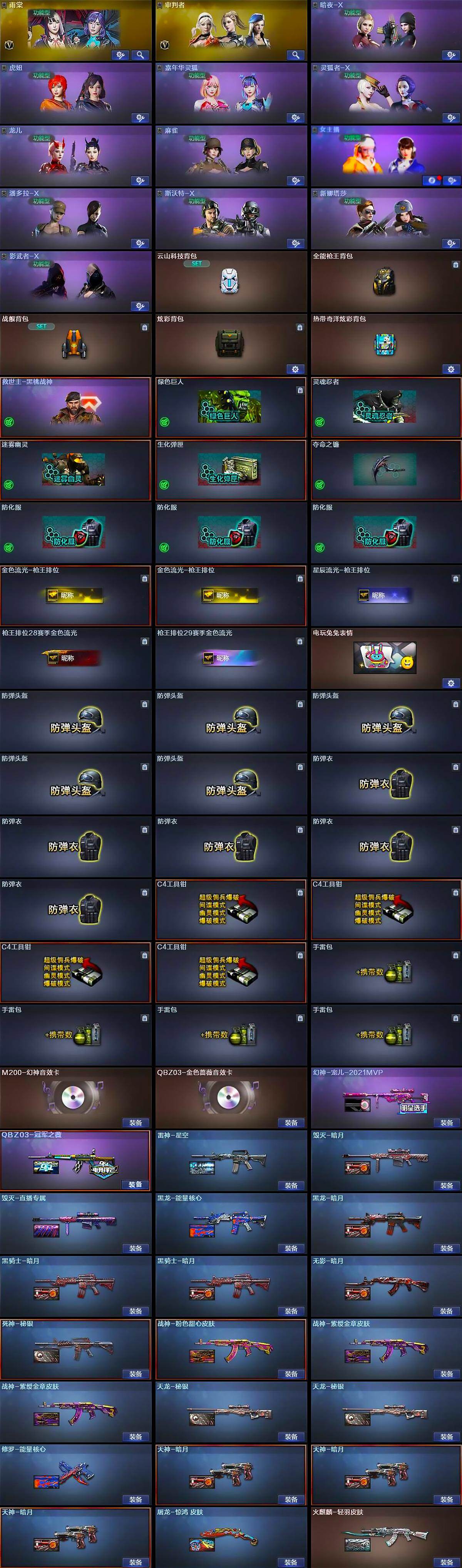 【皮肤】:幻神-宠儿-2021MVP,QBZ03-冠军之薇,雷神-星空,火麒麟-轻羽皮肤,毁灭-暗月,黑龙-能量核心,黑龙-暗月