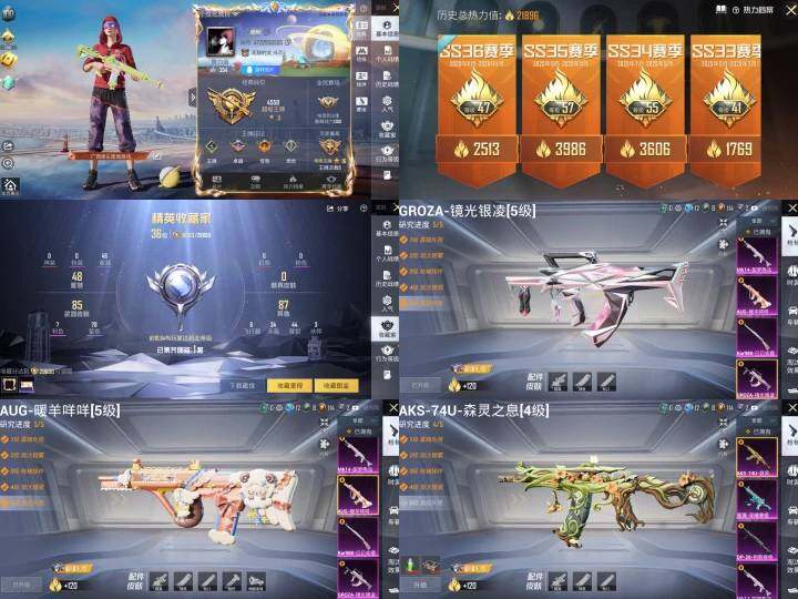 【粉色枪皮等级】:GROZA-镜光银凌(五级),AUG-暖羊咩咩(五级),蜜獾-异瞳寒姬(六级),AKS-74U-森灵之息(四级),Kar98K-巳巳如意(五级),Mk14-甜梦熊击(五级),DP-28-豹影疾电(五级)
