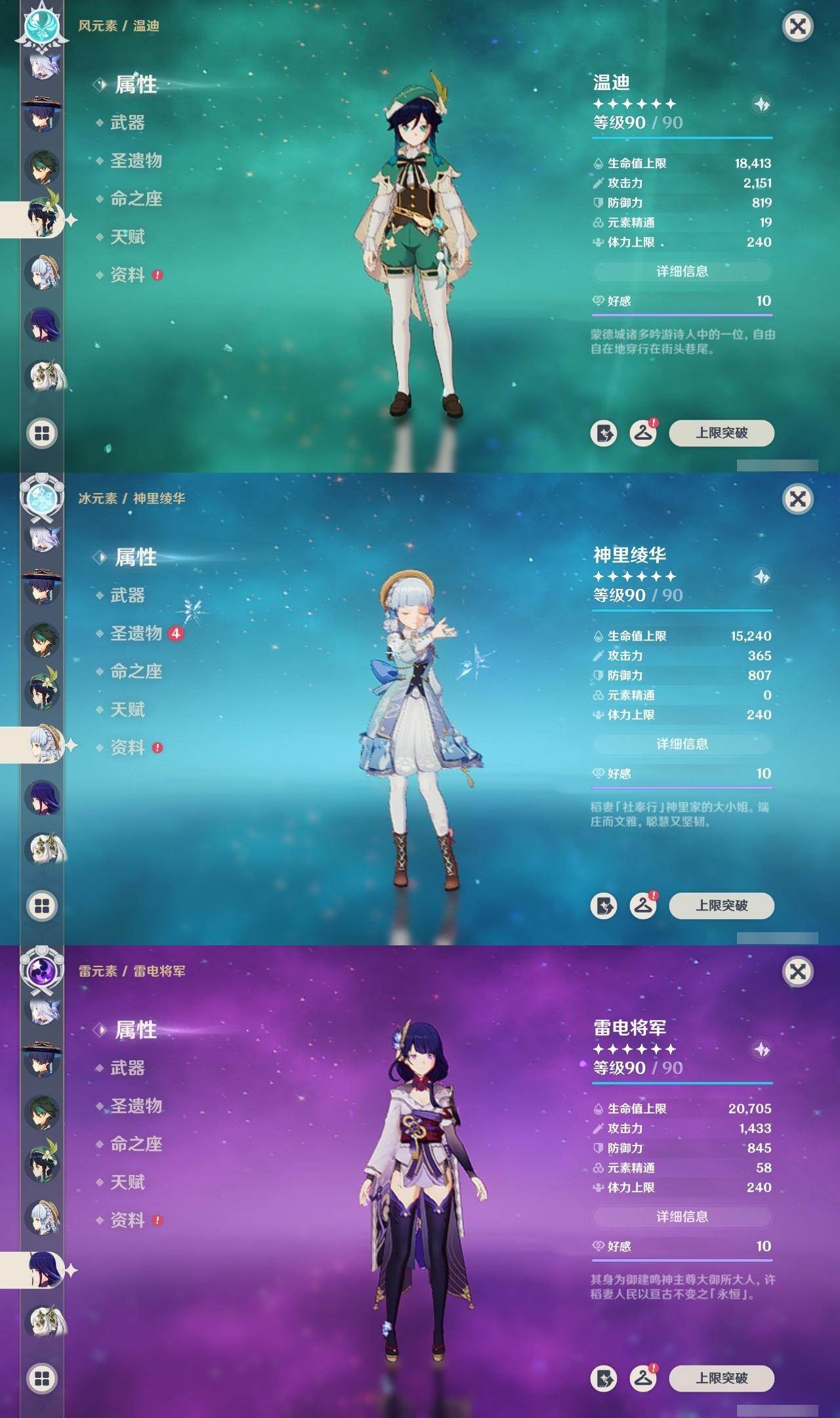 枫原万叶,钟离,魈,温迪,神里凌华,雷电将军,宵宫,荒泷一斗,琴,七七,珊瑚宫心海,迪卢克,申鹤,刻晴,莫娜