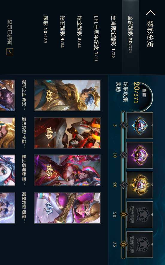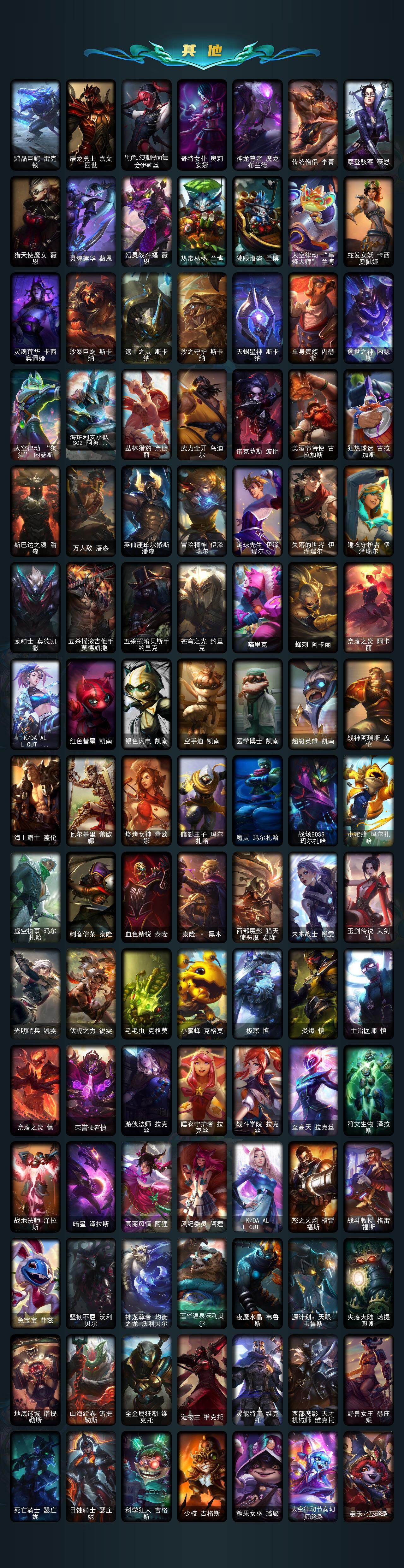 【臻彩皮肤】:天龙之子卡莎飞龙乘云,无畏骑士瑟庄妮赤子初心,墨之影武者亚索金墨耀影,冠军之刃锐雯2016凯旋圣装,冠军之血希瓦娜凯旋圣装,灵魂莲华阿狸春晓,神龙尊者圣龙李青龙腾云起,神龙尊者圣龙李青登龙,源计划联合艾希红莲之弓,星之守护者金克丝黑洞,西部天使赛娜贝利尔之怠,星之吞噬者莫甘娜热情之末,霸天异形卡兹克刹那银光,可爱可爱粉红红布里茨,殿堂传奇乐芙兰登神,魔女阿卡丽虚荣,净雪之月莫甘娜冬虹,心之钢伊泽瑞尔天纵才华