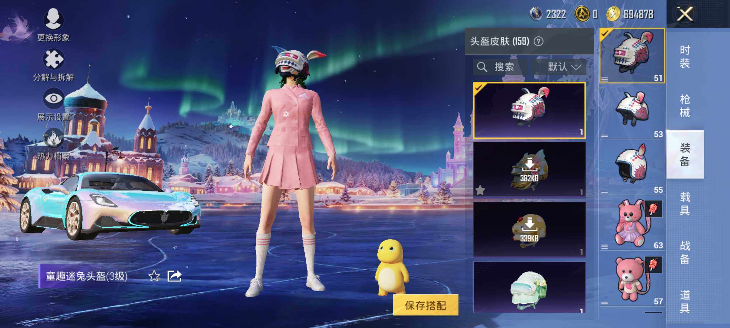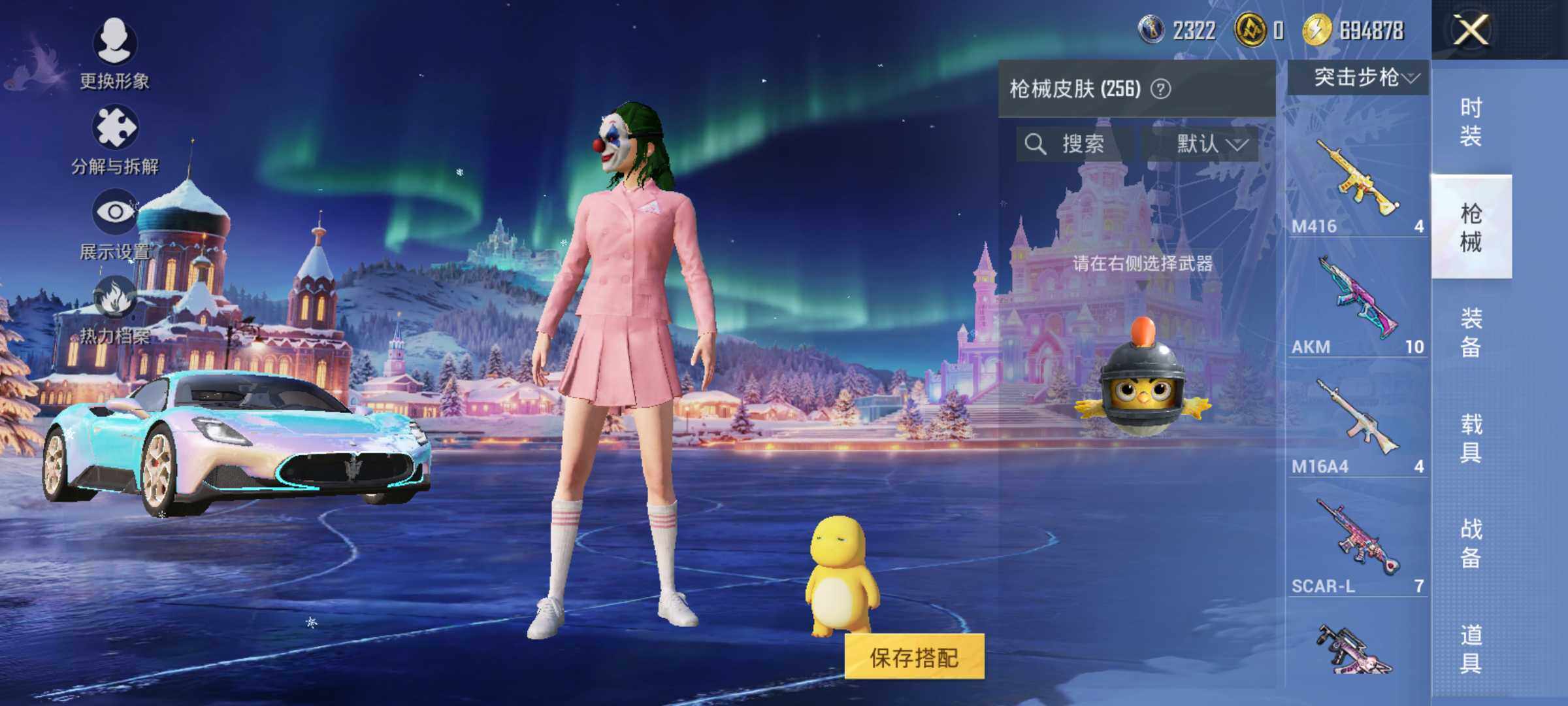 【粉色枪皮】:AKM-梦之光华,SCAR-L-童趣迷兔,SCAR-L-纯梦嫁纱,M416-心之恋语,M416-暖熊萌萌,GROZA-超新星,AUG-超新星