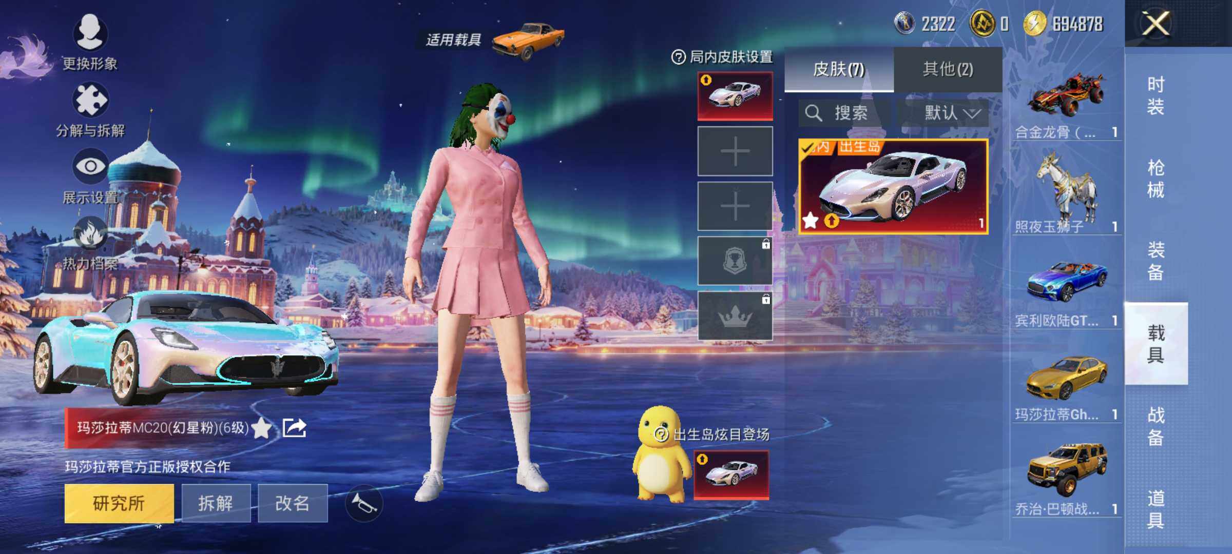 【红色载具】:玛莎拉蒂MC20(幻星粉)(六级),宾利欧陆GT敞篷(深空蓝)(二级)