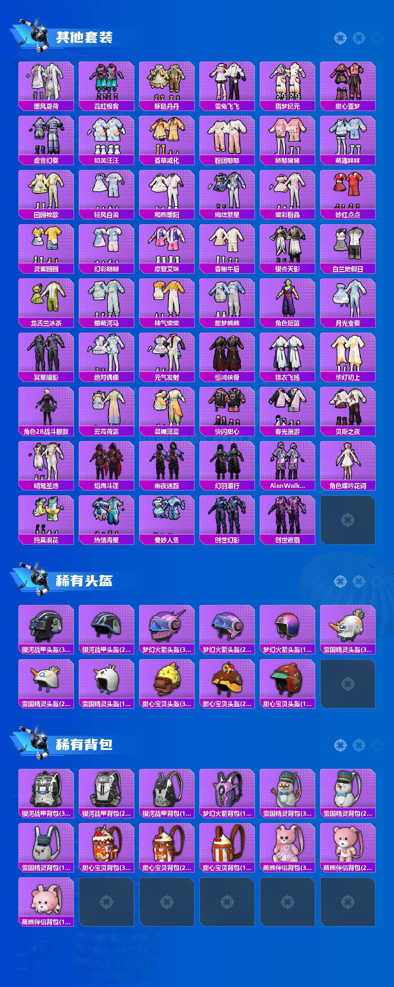 【粉色套装】:粉装-极限特训,粉装-怪诞乔克,粉装-银河战甲,粉装-甜心巧克力,粉装-宝贝奶油派,粉装-天使彩虹糖,粉装-雪国幻梦,粉装-梦幻火箭,粉装-星之信仰,粉装-缤纷油彩,粉装-放客神游,粉装-天禅智恒,粉装-花间之火,粉装-冰霜白皇,粉装-炙焰红王,粉装-香水柠檬,粉装-馨动时刻,粉装-闪光银龙,角色-复仇流浪者,粉装-灵感创作师,粉装-冰川红玫,粉装-暗夜鎏金,粉装-心之回忆,粉装-仲夏莫吉托,粉装-玉鳞金羽,粉装-莲影清波,角色-烟云彩露,角色-千金淑猫,角色-羊梦糖心