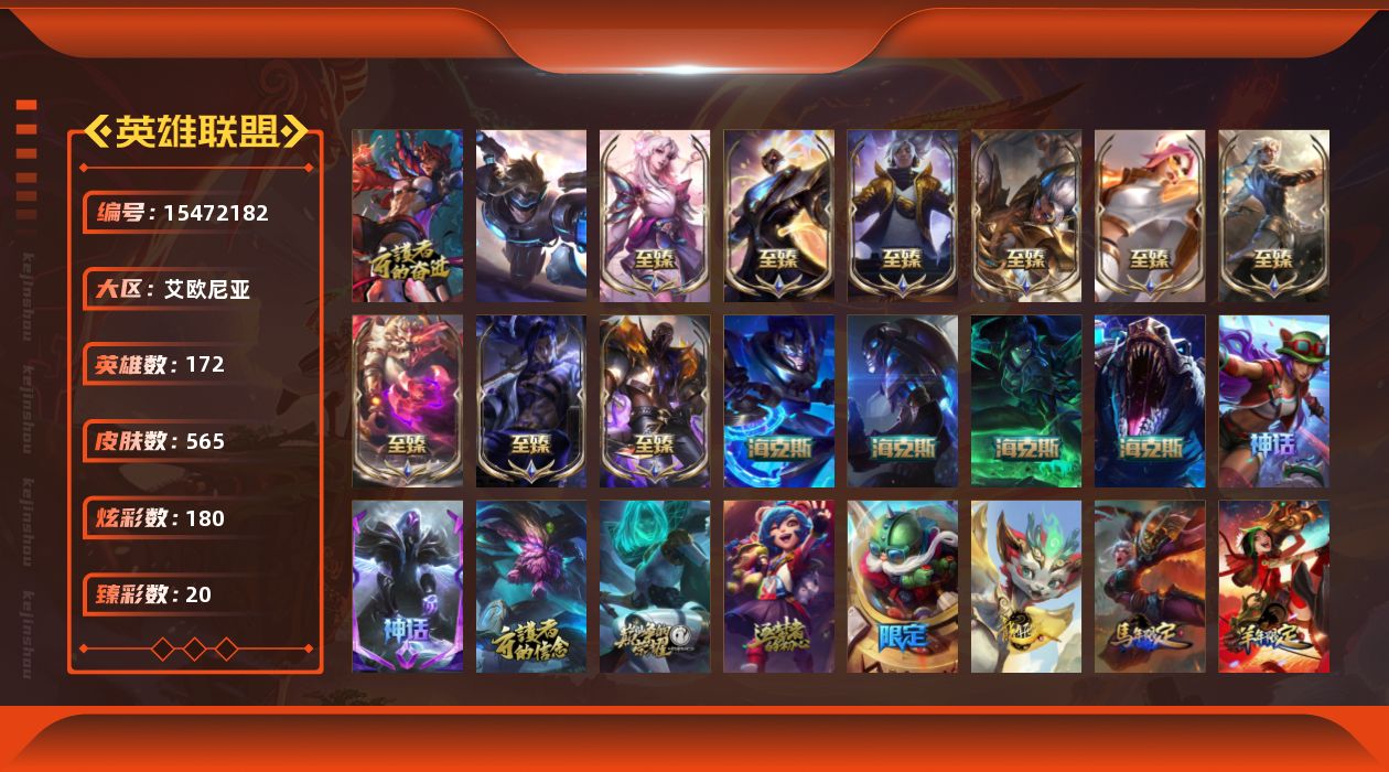 [15472182]【特价出售/店主推荐】铂金段位-172英雄-565皮肤-180炫彩-2终极-19神话-94限定-78传说-113史诗