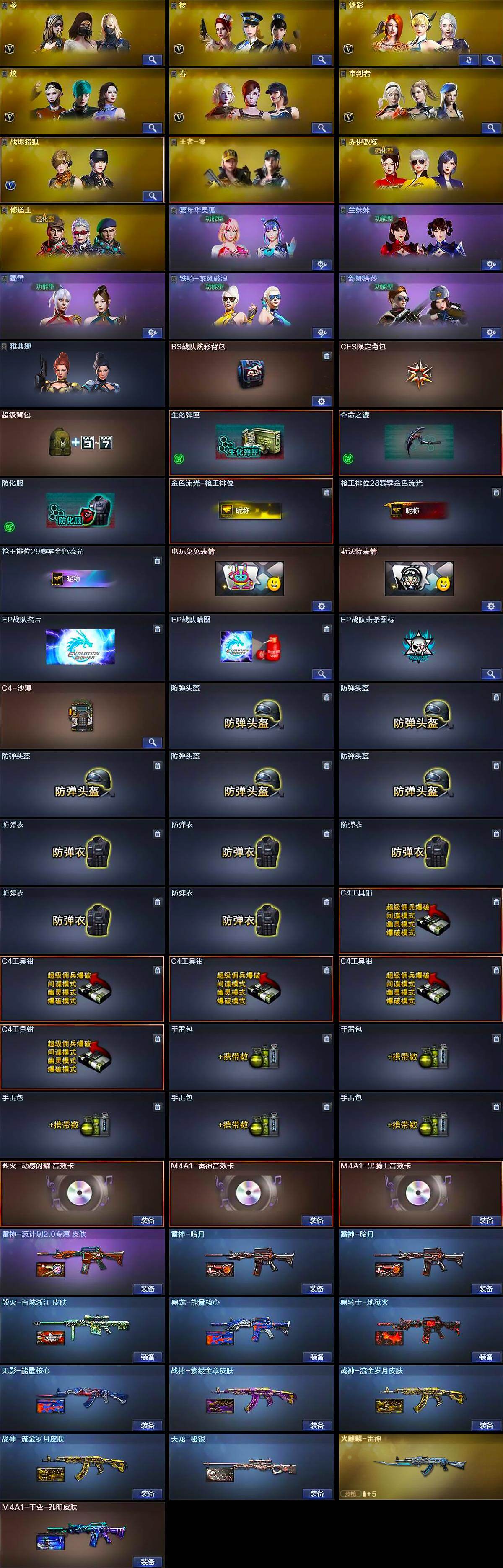 - [15523331]江西一区-100V-25王者-4炫金 【热门武器】:QBZ03-金色蔷薇,死亡之眼*4,M4A1-黑骑士*2,汤姆逊-烈龙*7,RPK-盘龙*2,加特林-炼狱*5,羊驼玩偶,沙鹰-修罗*5,高爆手雷-幻兽 【王者炫金武器】:王者之戮,超新星-悦享*3,天启-悦智*6,王者之势*3,王者之影*3,王者之魄,王者之心,盘龙-悦心*4,炼狱-悦蓝*3,炫金火麒麟,炫金黑龙,炫金毁灭,炫金修罗 【音效卡】:M4A1-雷神音效卡 【皮肤】:雷神-暗月,雷神-能量核心,火麒麟-雷神,毁灭-暗月*2,毁灭-荣耀之怒,毁灭-英雄计划 皮肤,黑龙-能量核心,无影-暗月*3,死神-秘银*2,天启-暗月*3,战神-粉色甜心皮肤,战神-紫绶金章皮肤*2,战神-流金岁月皮肤,极光-能量核心*4,修罗-能量核心*2,天神-暗月*4 【角色】:葵,樱,审判者,王者之瞳,乔伊教练,空,风暴女,嘉年华灵狐,铁骑荣耀,影武者-X 【人偶武器】:AWM-灵狐-15周年嘉年华,迷你生化手雷,生化手雷-机甲核心 【暴走生化】:死亡之眼*4 【挑战大师】:激光毁灭者III 【英雄级武器】:M4A1-千变,AK47-火麒麟*6,M4A1-黑龙*3,M4A1-雷神*3,M4A1-黑骑士*2,AK47-无影*2,M4A1-死神*3,AK47-黑武士,AK12-天启,AN94-超新星*3,M4A1-武圣,AK47-机械迷城*3,AK47-黑鲨,M4A1-玫瑰精灵*2,QBZ03-金色蔷薇,AK-47-猩红传说*5,AWM-天龙*4,Barrett-毁灭*2,Barrett-极光*7,AWM-裁决,Barrett-金色蔷薇*2,RPK-盘龙*2,加特林-炼狱*5,汤姆逊-烈龙*7,沙鹰-修罗*5,沙鹰-天神*4,沙鹰-幻兽,Glock18-武圣,屠龙*5,龙啸*2,擎天*2,麒麟刺*4,女皇利刃-幻兽,高爆手雷-幻兽,闪光弹-幻兽,烟雾弹-幻兽 【道具】:女皇终结者-背包,战舰背包,背包-葫芦兄弟,超级背包*2,女皇终结者-魔龙之吻,绿色巨人,灵魂忍者,变异宝贝,迷雾幽灵,夺命之镰,防化服*2,金色流光-枪王排位*2,星辰流光-枪王排位,枪王排位28赛季金色流光,枪王排位29赛季金色流光,防弹头盔*2,防弹衣*2,C4工具钳*2,手雷包*2 【特殊枪械】:2黑骑士,6烈龙,2盘龙,5炼狱
