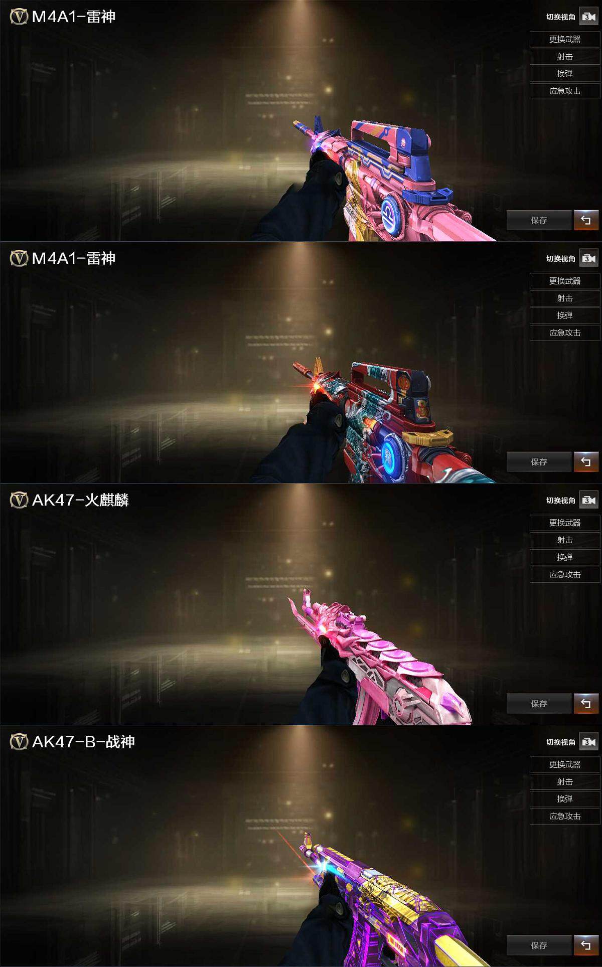 【皮肤】:雷神-维纳斯皮肤,M4A1-雷神-新春神龙皮肤,火麒麟-心动糖果,战神-紫绶金章皮肤