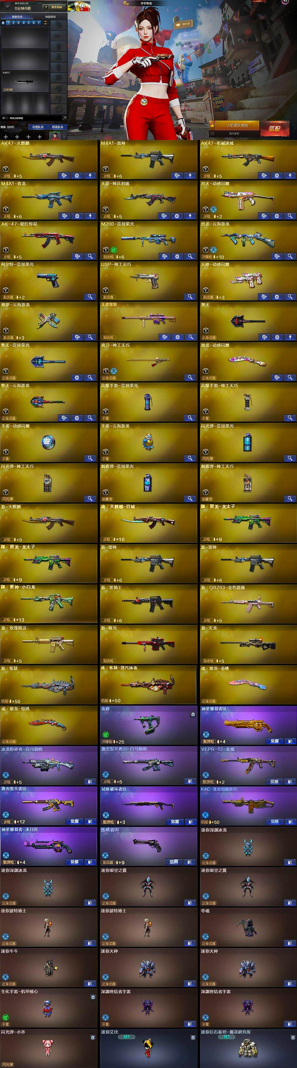 - [15162190]山东一区-56V-4王者-2炫金 【传说武器】:传说暗裔 【热门武器】:传说暗裔,QBZ03-金色蔷薇,M14EBR-玄武,HK417-朱雀*2,M4A1-青龙,M200-幻神,死亡之眼,白虎-电玩蓝兔,柯尔特-冠军之特,炼狱-迷你小钢,M4A1-黑骑士,汤姆逊-烈龙*3,RPK-盘龙*6,加特林-炼狱,金色蔷薇-空,沙鹰-修罗*4 【王者炫金武器】:炫金天龙,炫金修罗 【音效卡】:M200-幻神音效卡,AK47-火麒麟音效卡,M4A1-黑龙音效卡,M4A1-黑骑士音效卡,Barrett-毁灭音效卡 【皮肤】:幻神-巅峰荣耀,QBZ03-荣耀世冠EP 皮肤,雷神-荣耀之魄,雷神-星空,雷神-冠军之魄,雷神-脉冲核心*2,火麒麟-盘古,火麒麟-白虎,毁灭-荣耀之怒,毁灭-星空,毁灭-战神张飞,黑龙-冠军之武,黑骑士-冠军之势,黑骑士-电玩青兔皮肤,无影耀金皮肤,战神-粉色甜心皮肤,战神-紫绶金章皮肤,战神-流金岁月皮肤,修罗-星空,擎天-冠军之击 【角色】:雨棠,鹰,战地猎狐,王者涂鸦,暗夜-X,飞虎队-X,风暴女,卡塔琳娜,兰妹妹,灵狐者-X,潘多拉-X,潘多拉-甜心教官,蜀雪,游珑儿 【人偶武器】:王者Barrett-英勇金戈,王者M200-无畏金戈,炼狱-迷你小钢,金色蔷薇-空,迷你超能女侍 【暴走生化】:死亡之眼,超级对讲机 【挑战大师】:冰龙粉碎者-白马银枪 【英雄级武器】:AK47-火麒麟,M4A1-黑龙,M4A1-雷神,M4A1-黑骑士,AK47-无影,M4A1-青龙,HK417-朱雀*2,M14EBR-玄武,黑武士-锦绣游龙,QBZ03-金色蔷薇,王者之魄-觉醒版,AK-47-猩红传说,王者白虎-觉醒版,白虎-电玩蓝兔,Barrett-毁灭,M200-幻神,Barrett-朱雀,Barrett-电竞装甲,王者星神-觉醒版,王者森决-觉醒版,RPK-盘龙*6,加特林-炼狱,汤姆逊-烈龙*3,沙鹰-修罗*4,柯尔特-冠军之特,柯尔特-电竞装甲*2,柯尔特-荣耀世冠EP,屠龙,擎天,麒麟刺,尼泊尔-电竞装甲,闪光弹-云龙,M4A1-赤狱骑士 【道具】:KZ战队炫彩背包,女皇终结者-魔龙之吻,救世主-黑桃战神,绿色巨人,灵魂忍者*3,变异宝贝,迷雾幽灵*3,夺命之镰,防化服*3,金色流光-枪王排位*2,星辰流光-枪王排位,流光-再燃火线,枪王排位28赛季金色