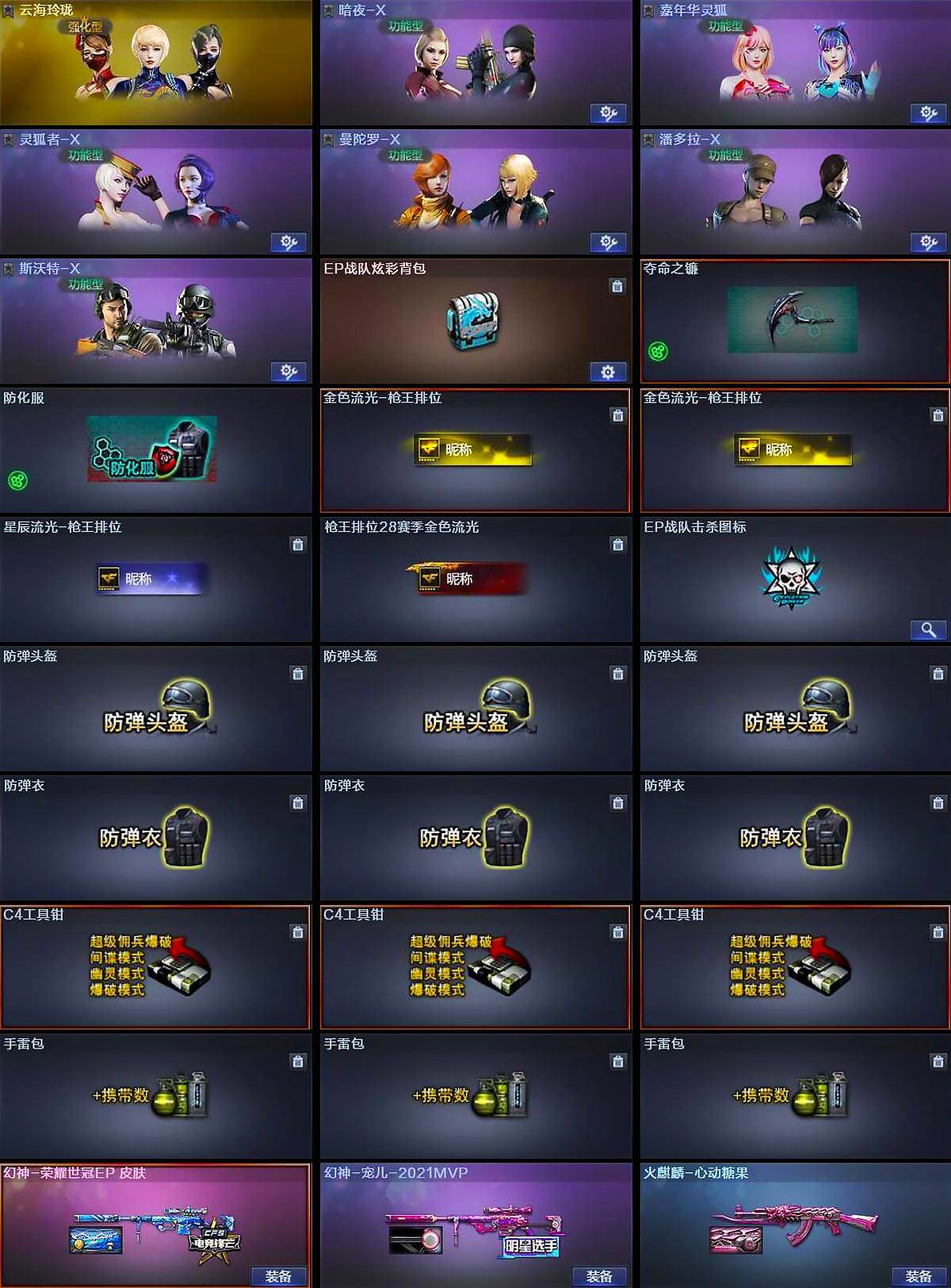 【道具】:EP战队炫彩背包,夺命之镰,防化服,金色流光-枪王排位*2,星辰流光-枪王排位,枪王排位28赛季金色流光,EP战队击杀图标,防弹头盔*3,防弹衣*3,C4工具钳*3,手雷包*3