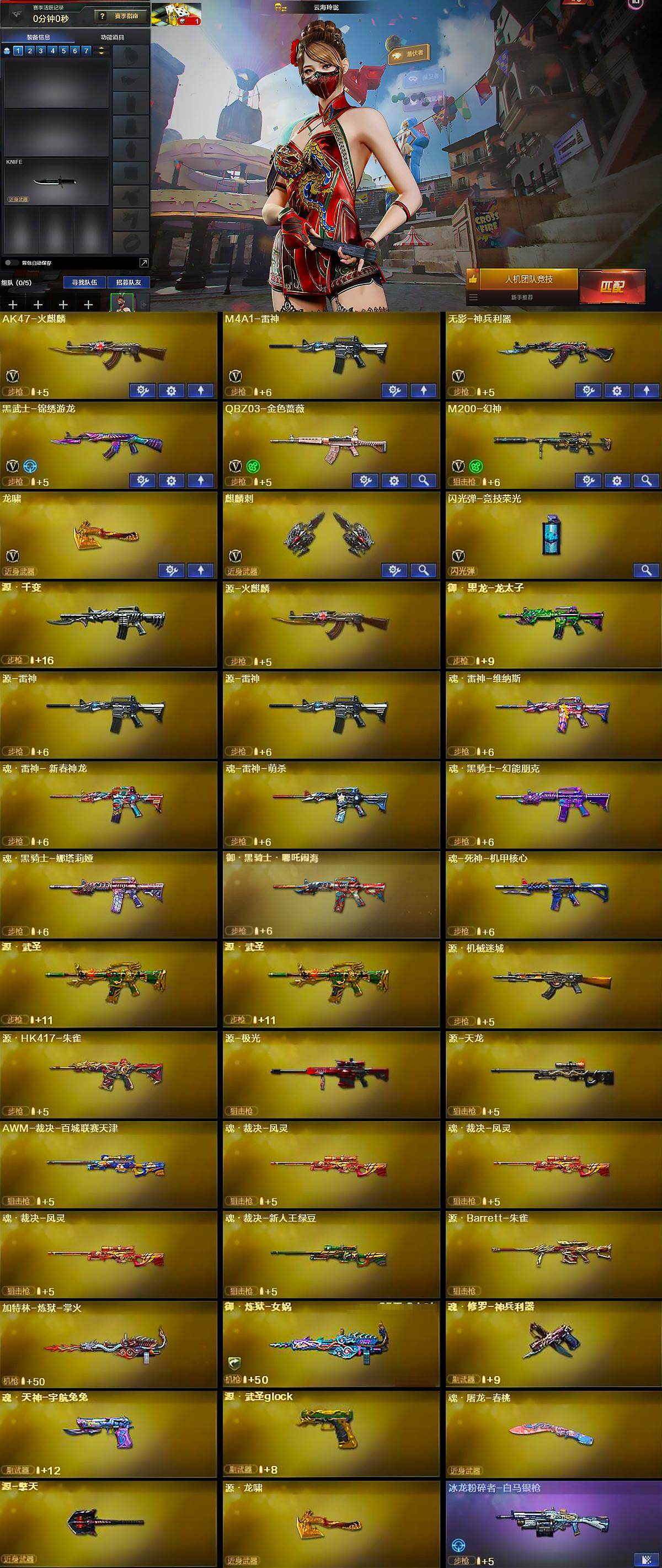 - [12308820]【商品标题】:黑龙江区-79V-9王者-2炫金 【热门武器】:QBZ03-金色蔷薇,Scar Light-白虎,M4A1-青龙,M200-竞技荣光,M4A1-黑骑士,汤姆逊-烈龙,RPK-盘龙*4,裁决-雪莉杨,USP-雷暴,沙鹰-修罗*2 【王者炫金武器】:炫金天龙,炫金雷神,王者云击 【音效卡】:AK47-火麒麟音效卡,M4A1-雷神音效卡,M4A1-黑龙音效卡,M4A1-黑骑士音效卡,Barrett-毁灭音效卡,Scar Light-白虎音效卡 【稀有皮肤】:Scar Light-白虎-暗星,雷神-星空,雷神-虎将,火麒麟-冠军之心,火麒麟-轻羽皮肤,火麒麟-平天大圣,火麒麟-心动糖果,黑骑士-暗月,毁灭-星空,毁灭-黑大圣皮肤,修罗-星空 【角色】:王者零-华冠丽服,王者-魅影,葵,电竞教官-云悠悠,战地猎狐,铁骑荣耀 【人偶武器】:裁决-雪莉杨,火麒麟-灵狐,AWM-灵狐-15周年嘉年华*2,夺魂,灵狐娃娃手雷,生化手雷-机甲核心 【暴走生化】:超级对讲机 【挑战大师】:激光毁灭者III,激光毁灭者III-白马银枪*2,冰龙粉碎者-白马银枪 【英雄级武器】:M200-竞技荣光,柯尔特-竞技荣光,擎天-竞技荣光,高爆手雷-竞技荣光*9,烟雾弹-竞技荣光*9,闪光弹-竞技荣光*9,马来剑-夜魔,USP-雷暴,烈火-动感闪耀,天神-动感闪耀,屠龙-动感闪耀,手雷-动感闪耀,QBZ03-金色蔷薇,Scar Light-白虎,M4A1-青龙,无影-神兵利器,M4A1-雷神,M4A1-黑龙,M4A1-黑骑士,M4A1-死神,RPK-盘龙*4,汤姆逊-烈龙,AK47-无影,AK47-火麒麟,AK47-黑武士,AK12-天启,AWM-天龙,Barrett-毁灭,AWM-裁决,M4A1-龙血,AA-12-雷霆,黑武士-锦绣游龙,黑骑士-海王*2,超新星-热带奇洋,M4A1-赤狱骑士,沙鹰-天神,沙鹰-修罗*2,麒麟刺,擎天,龙啸,屠龙,龙啸-热带奇洋 【特殊枪械】:1白虎,1黑骑士,1烈龙,4盘龙