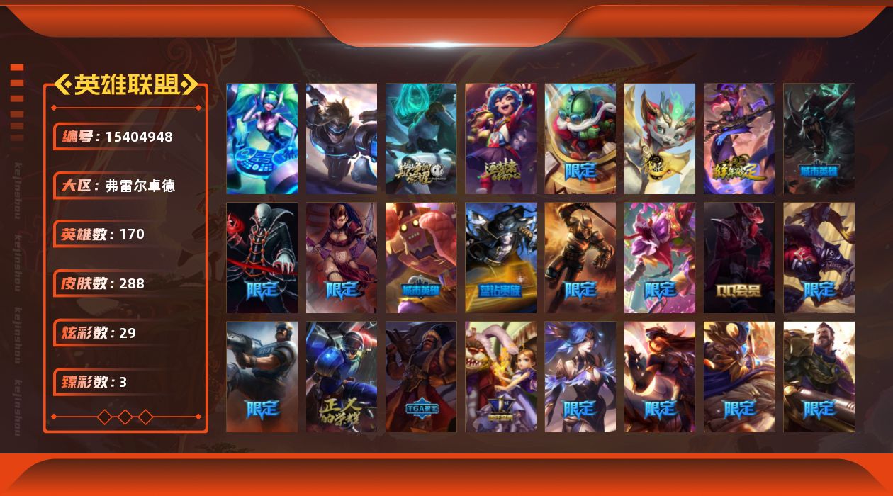 [15404948]【特价出售/店主推荐】黑铁段位-170英雄-288皮肤-29炫彩-2终极-2神话-48限定-17传说-74史诗