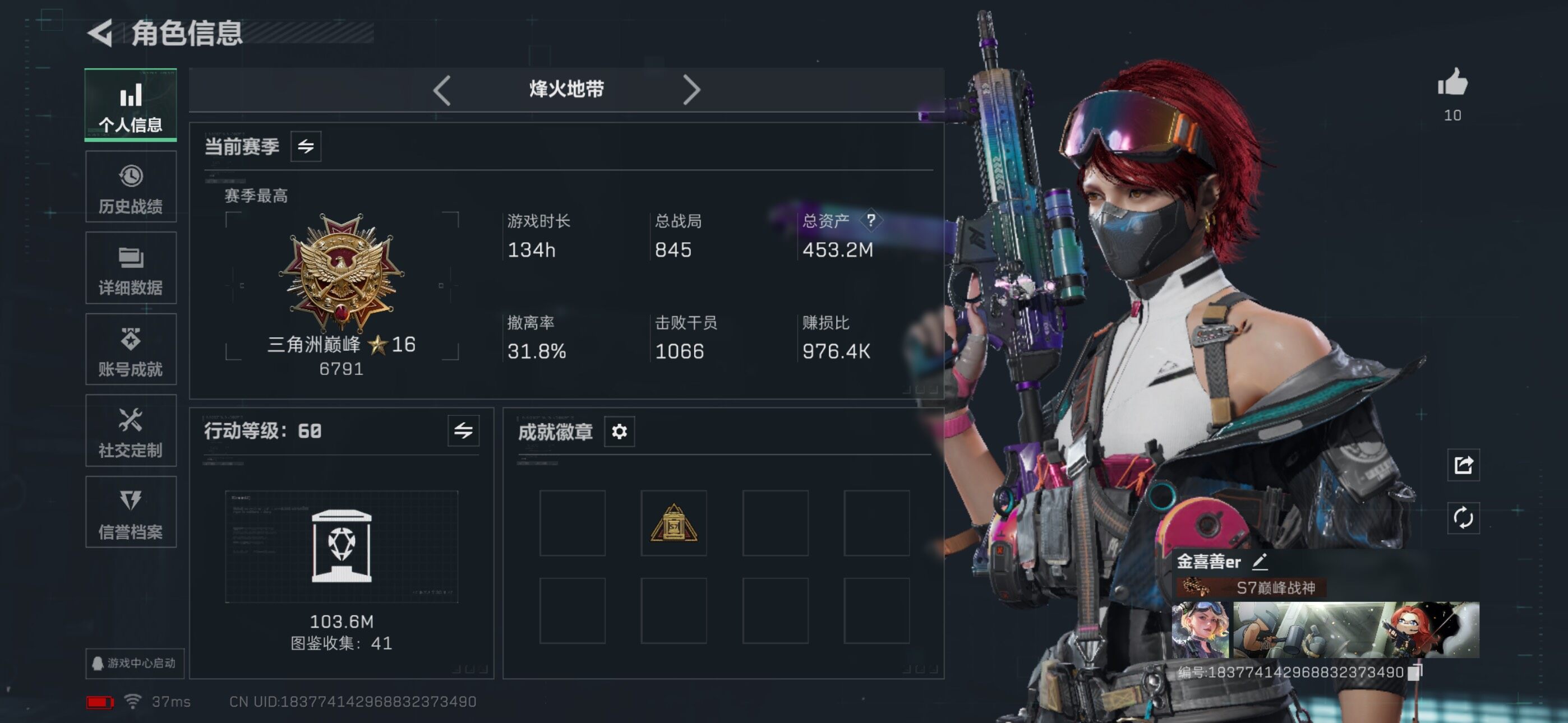 [15478753]453m总资产-102836k哈伏币-60烽火等级-三角洲巅峰-14战场等级-上等兵