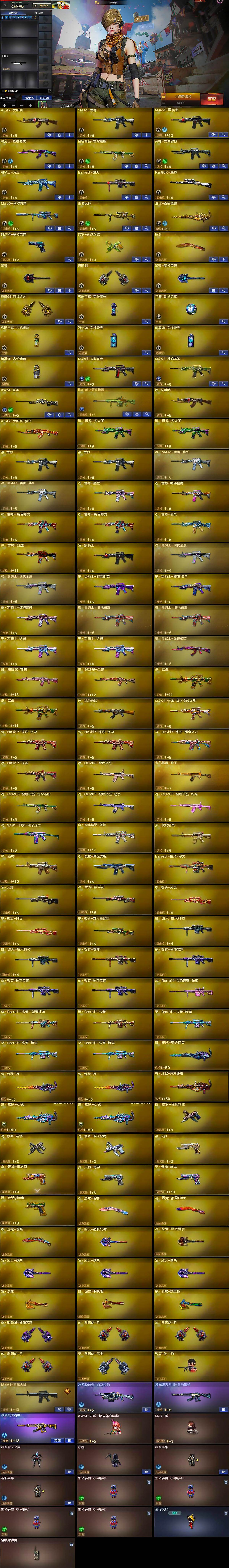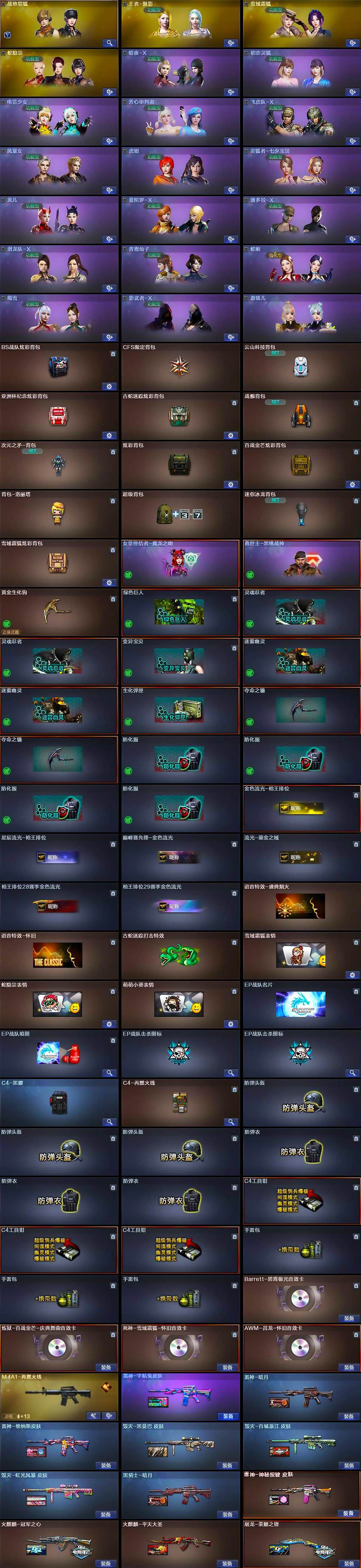 - [14740338]6英雄角色数-196英雄武器数 【王者系列】:王者之戮,王者之影,王者之心,王者之神,王者之迹,王者之蝶,王者之兽,王者之狱,王者之隐,王者之霆,王者之业,COP 357-雷霆王者 【热门武器】:KSG-孟获,81式-光明之神,MK47-仁德,M4A1-仲达,M4A1-游骑兵,M200-幻神,AWM-妙才,AWM-游骑兵,VEPR12-宙斯,COP 357-堕天神,81式-阿波罗,CZS2-仲康,AN94-盖 【角色】:幽灵刀锋-觉醒,关小雨,晴雅,蝉,夏日灵狐-X,步练师 【英雄武器】:AK47-无影,AK47-火麒麟,AK47-Rush-星速,AK47-雷霆,AK47-雅韵青花,AK47-谜城烟火,M4A1-雷神,M4A1-黑骑士*2,M4A1-黑龙*2,M4A1-死神,M4A1-游骑兵,M4A1-仲达,M4A1-雷霆,M4A1-哈迪斯,M4A1-运输船,M4A1-千变,M4A1-铁胆虎魄,SCAR-幽暗骑士,SCAR Light-白虎,AN94-超新星,AN94-赳赳秦师,AN94-盖,M14EBR-暗夜,M14EBR-拂影,M14EBR-葫芦山庄,AK12-天启,81式-光明之神,MK47-机械纪元,MK47-云舞,MK47-仁德,SKS-美杜莎,G3A3-衍神兵,AWM-天龙,AWM-赛博时代,AWM-游骑兵,AWM-妙才,巴雷特-毁灭,巴雷特-极光*6,M200-幻神,TAC-天使,TAC-雷暴,寒霜烈龙*5,QCW05-变形金刚·大黄蜂,A180-地狱凤凰,CZS2-仲康,M12S-雷霆,M12S-天公,VEPR12-宙斯,AA12-竞界荣光,KSG-孟获,KSG-钟馗觉醒,贝雷塔-力拔山河,M1887-幽冥玄喵觉醒*2,USP-机械迷城,USP-仁德,沙鹰-修罗,沙鹰-宇航兔兔,蚩尤战弓觉醒,COP 357-堕天神,COP 357-雷霆王者,双管猎枪-威侯,柯尔特-仲达,CZ75-策,MK23-机械纪元,MK23-幻神,掠夺者P365-虹舞,白骨利刃,墨刃-幻神,雌雄双股剑,炽芒蝶刃*6,龙啸,神罚战斧*2,镰刀-哈迪斯,气勇胆烈戟,屠龙*14,尼泊尔-雷霆*3,穷奇铁扇,龙鳞-觉醒,麒麟刺,星芒,马来剑-毁灭,斩魔剑-天使,唐刀-华夏传说,方天画戟,擎天觉醒,铁锹-孟德,虚空之槌-妙才,丛林匕首-火力竞放觉醒,丛林匕首-庆龙觉醒,黄金迷你玉凝 【