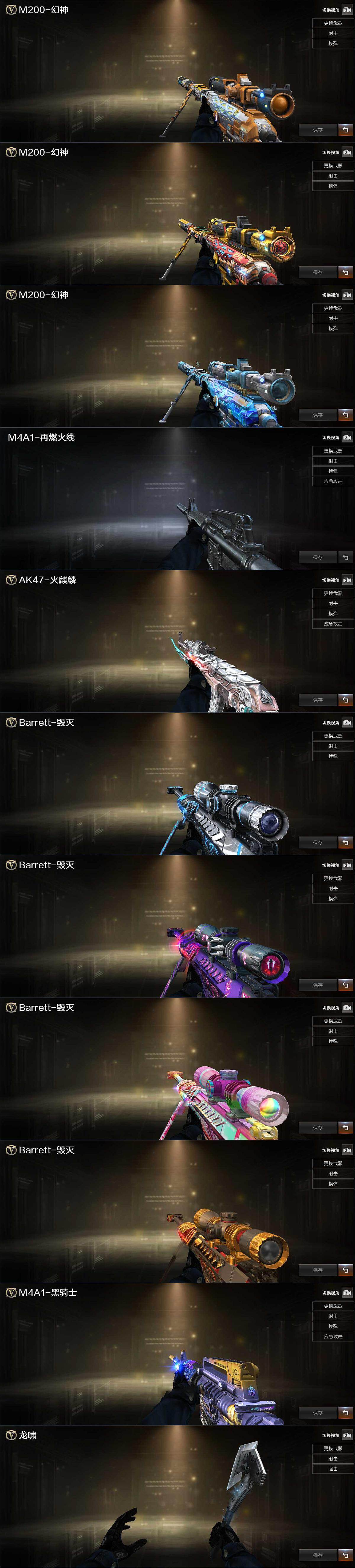 【音效卡】:M200-幻神音效卡,M4A1-黑骑士音效卡,Barrett-毁灭音效卡