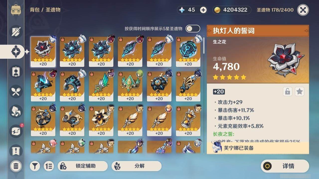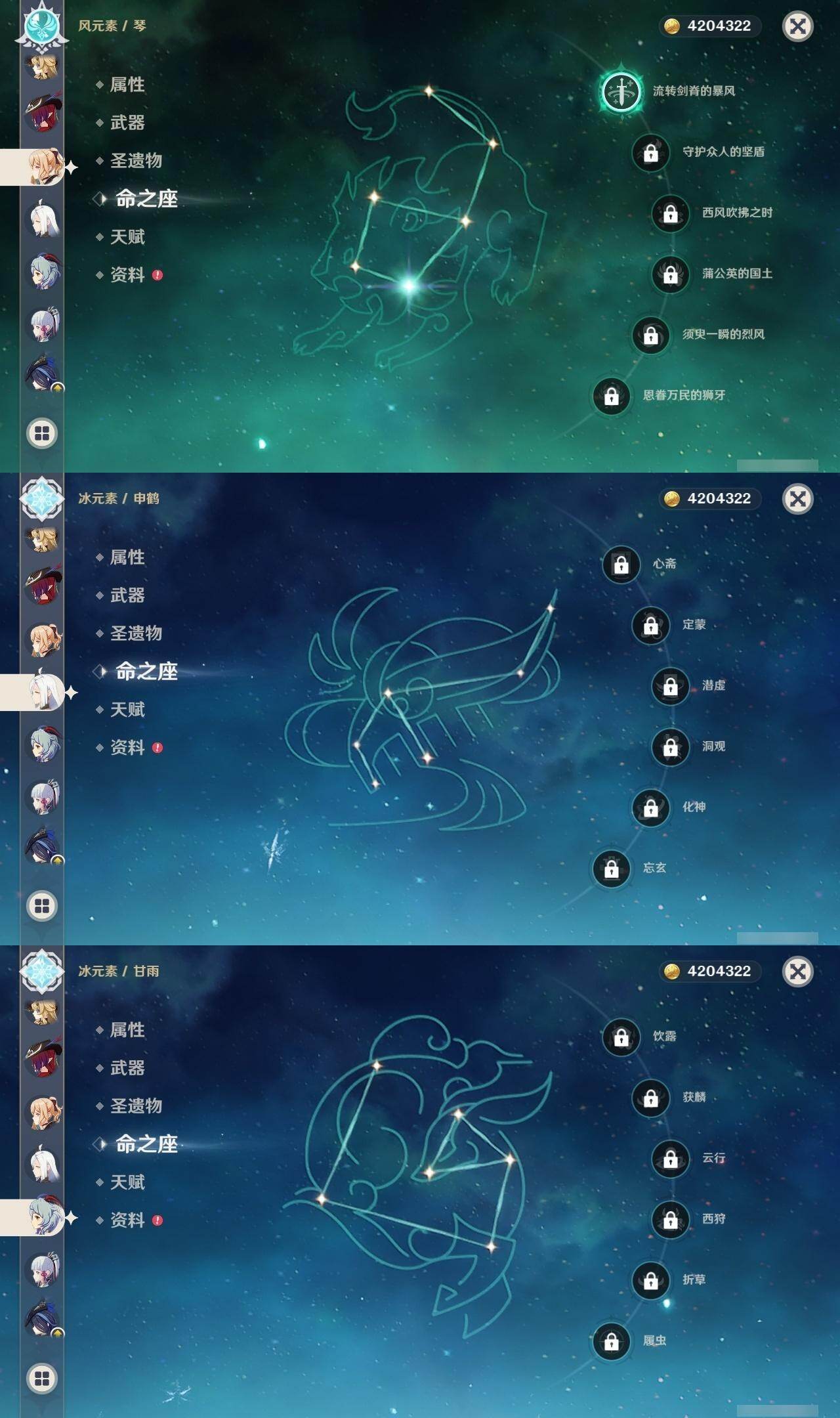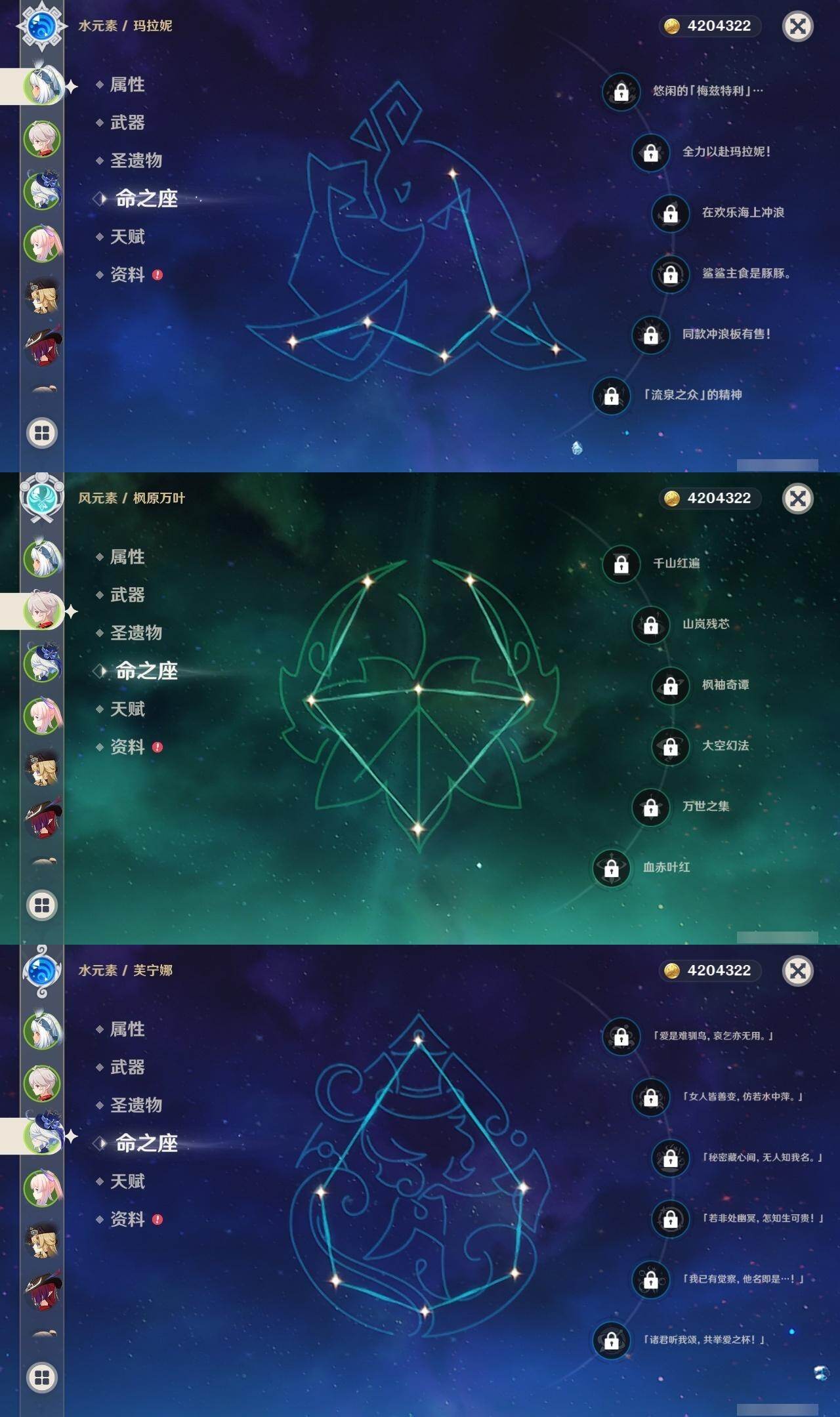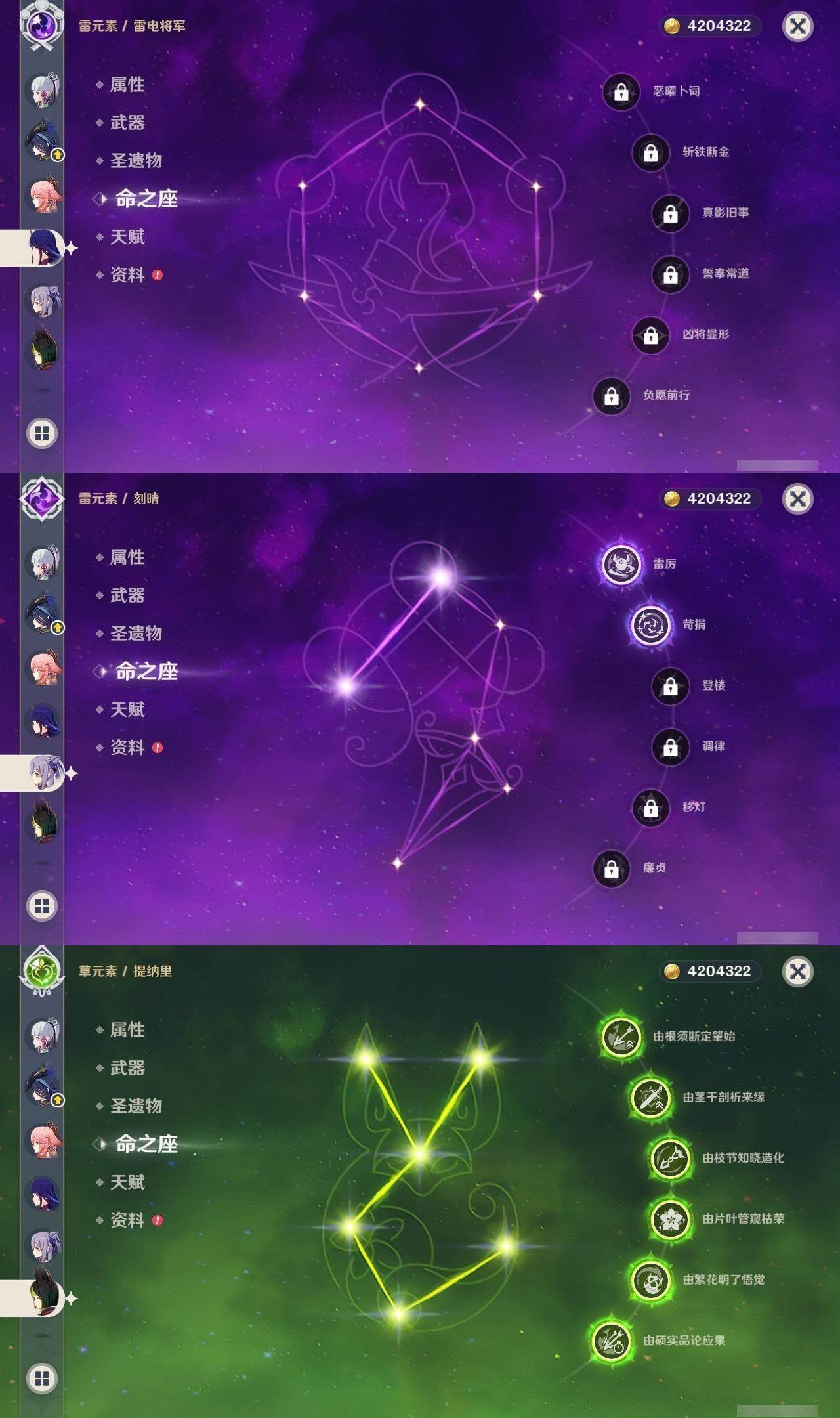 0命克洛琳德,0命娜维娅,0命芙宁娜,0命迪希雅,满命提纳里,0命夜兰,2命八重神子,0命申鹤,0命雷电将军,0命枫原万叶,0命神里绫华,1命胡桃,0命甘雨,0命宵宫,0命珊瑚宫心海,2命刻晴,1命琴,1命莫娜,0命玛拉妮,0命恰斯卡,0命梦见月瑞希,精1静水流涌之辉,精1圣显之钥,精1若水,精1神乐之真意,精1冬极白星,精1薙草之稻光,精1飞雷之弦振,精1护摩之杖,精2和璞鸢,精1天空之脊,精1阿莫斯之弓,精1天空之卷,精1风鹰剑,精1天空之傲
