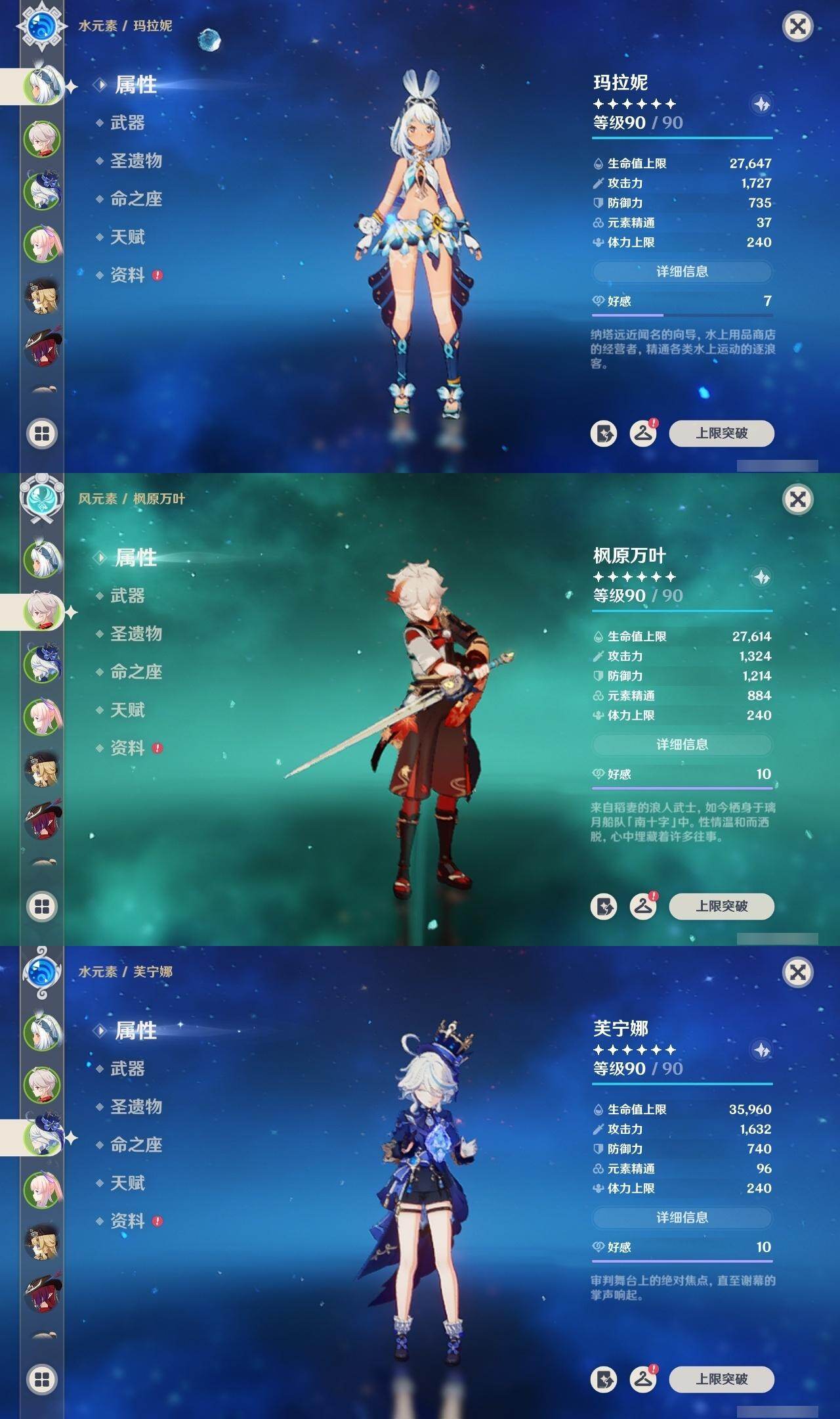 枫原万叶,珊瑚宫心海,琴,申鹤,甘雨,神里凌华,八重神子,雷电将军,刻晴,莫娜,宵宫,胡桃