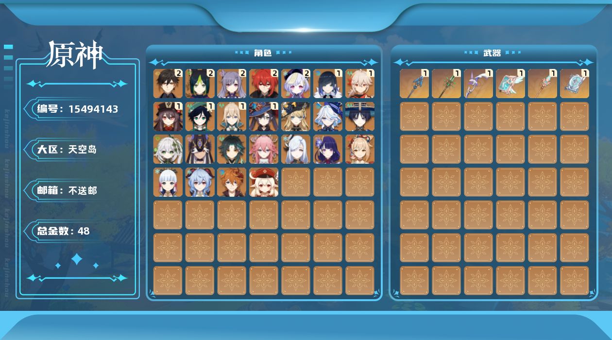 [15494143]60级/48黄/男主/26个五星角色/6个五星武器