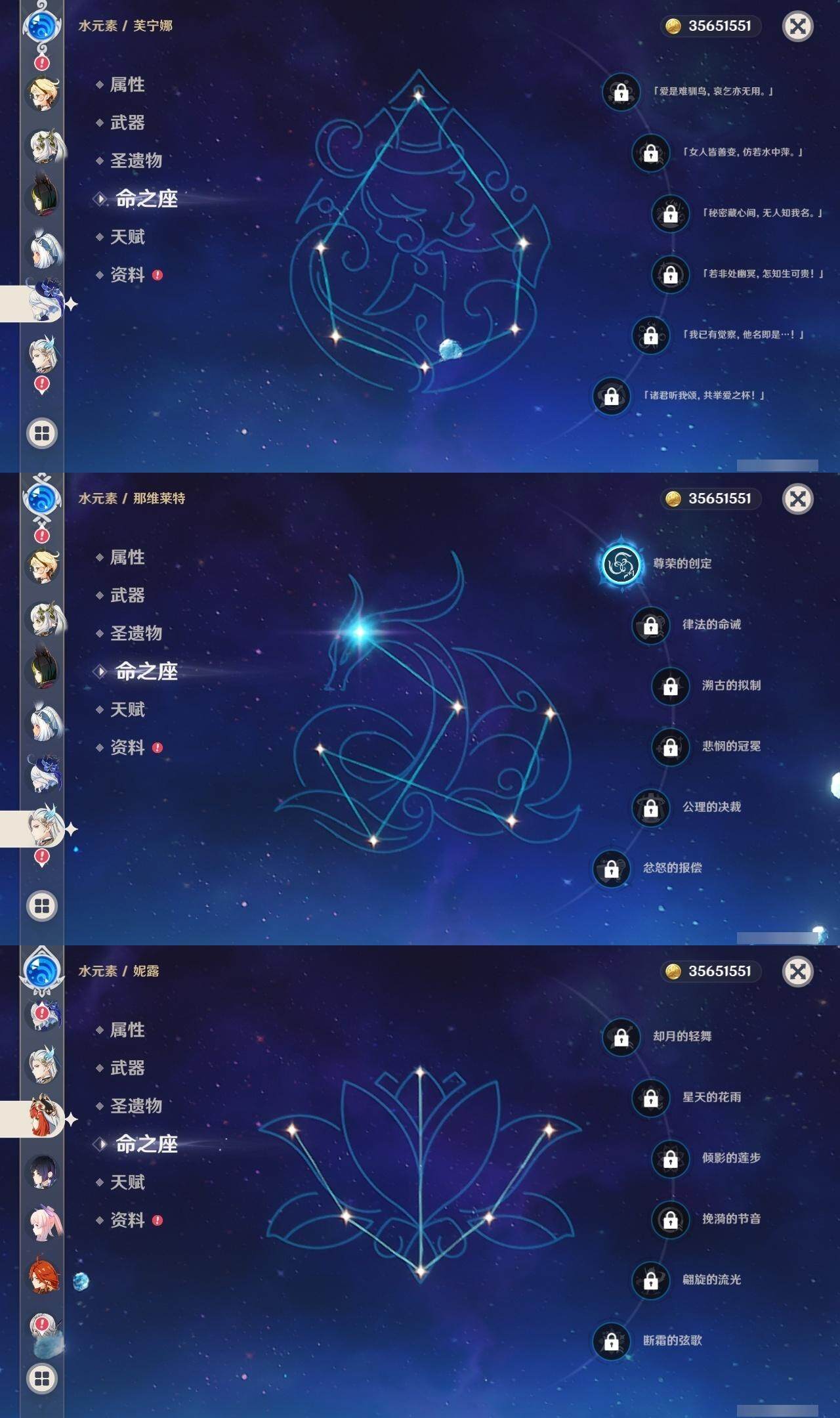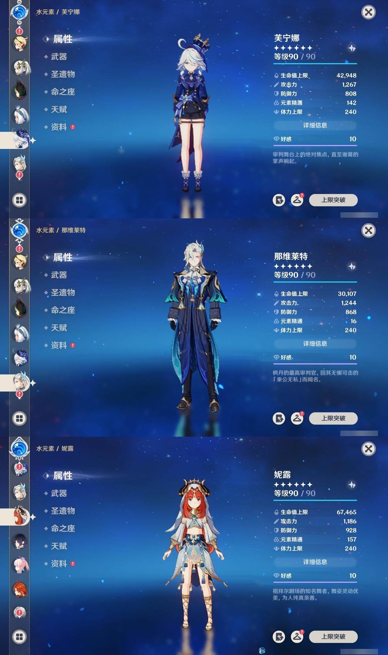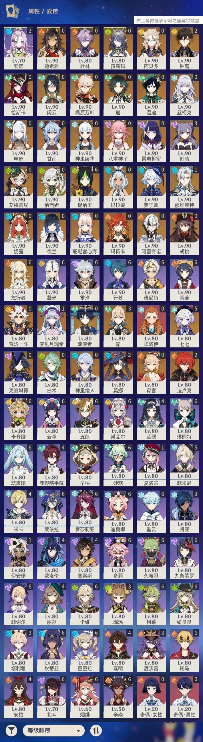- [15405440]60级/51黄/女主/23个五星角色/9个五星武器 0命娜维娅,1命芙宁娜,0命那维莱特,0命纳西妲,满命提纳里,0命夜兰,0命神里绫人,0命八重神子,0命荒泷一斗,0命优菈,1命雷电将军,2命枫原万叶,0命钟离,1命胡桃,0命甘雨,0命魈,0命达达利亚,1命刻晴,3命七七,1命琴,1命莫娜,2命迪卢克,0命奈芙尔,精1苇海信标,精1飞雷之弦振,精1雾切之回光,精1护摩之杖,精1阿莫斯之弓,精1风鹰剑,精1狼的末路