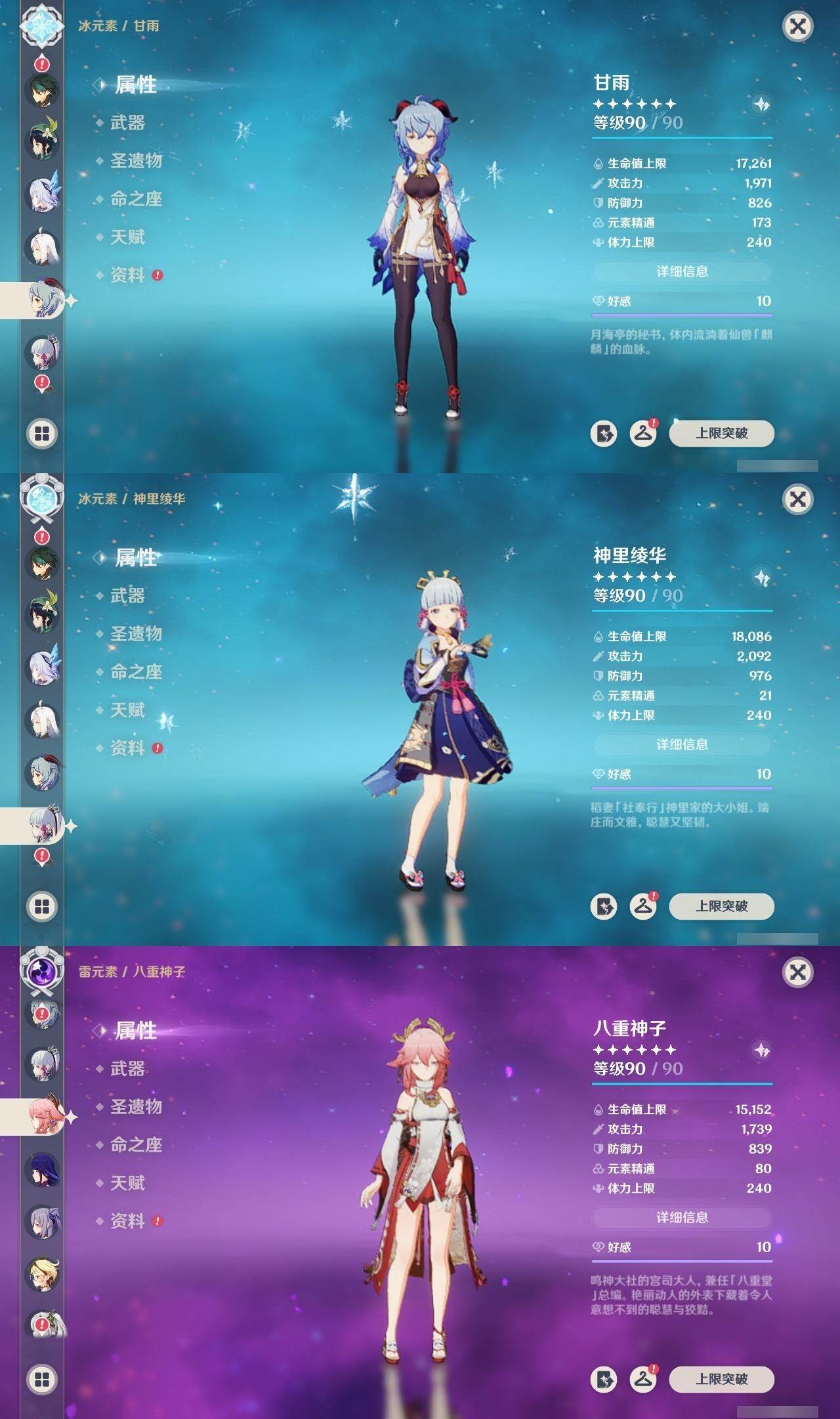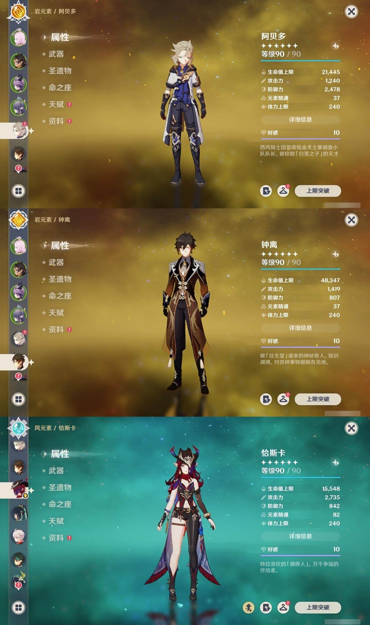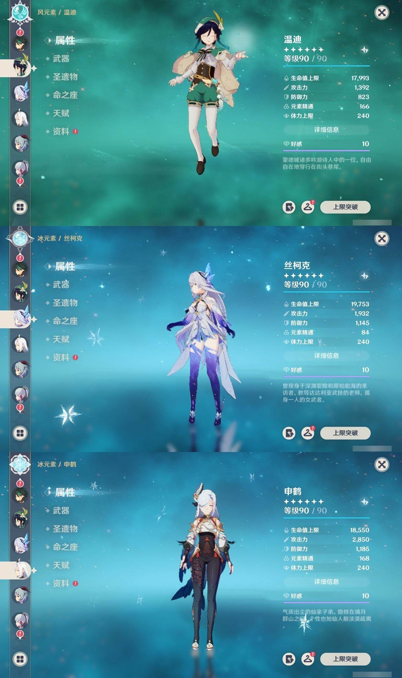 阿贝多,钟离,枫原万叶,魈,温迪,申鹤,甘雨,神里凌华,八重神子,雷电将军,刻晴,珊瑚宫心海,胡桃,荒泷一斗,琴,七七,莫娜,宵宫,迪卢克