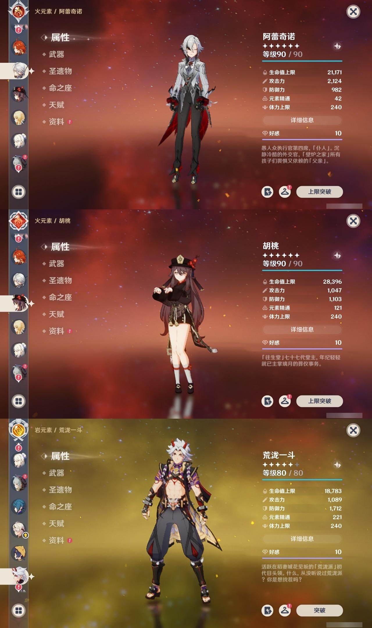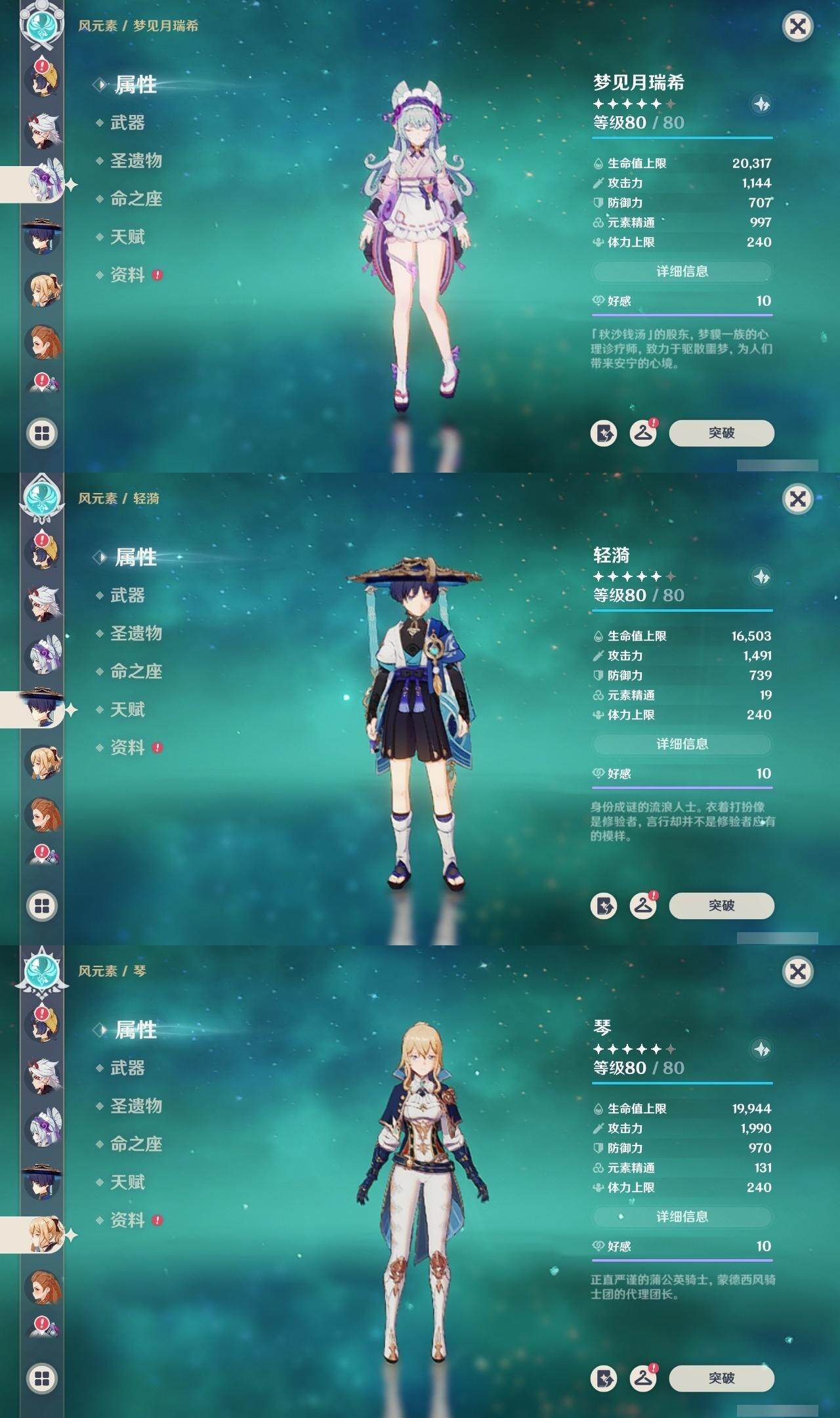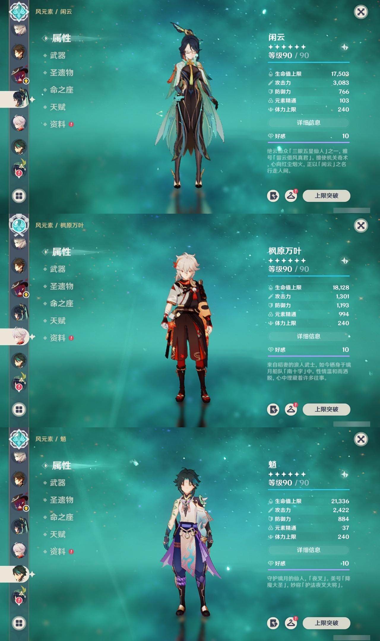阿贝多,钟离,枫原万叶,魈,温迪,申鹤,甘雨,神里凌华,八重神子,雷电将军,刻晴,珊瑚宫心海,胡桃,荒泷一斗,琴,七七,莫娜,宵宫,迪卢克