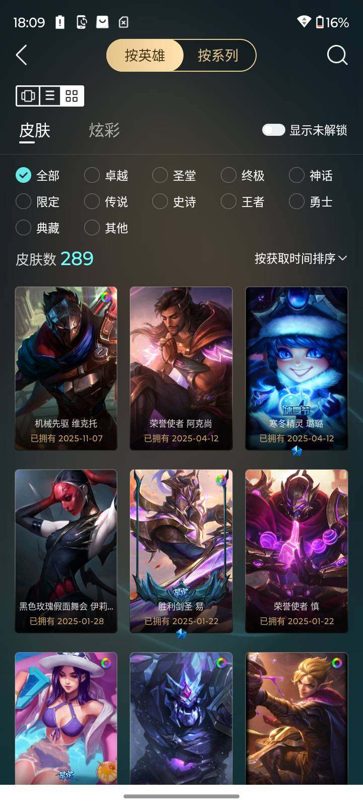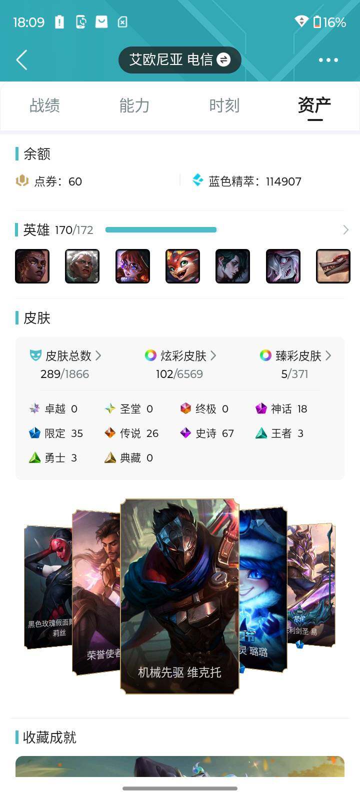 [15499717]【店主推荐捡漏号】未定级段位-170英雄-289皮肤-102炫彩-0终极-18神话-35限定-26传说-67史诗