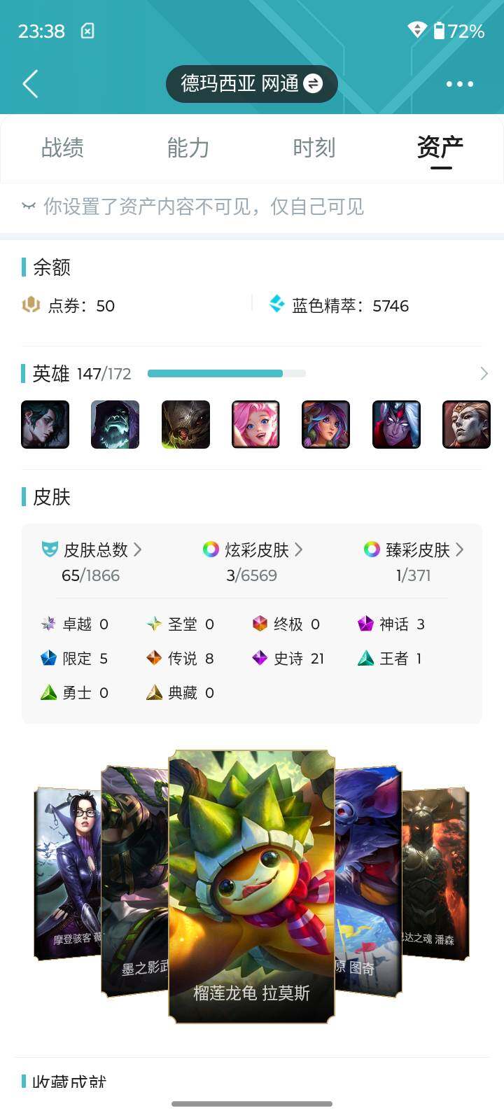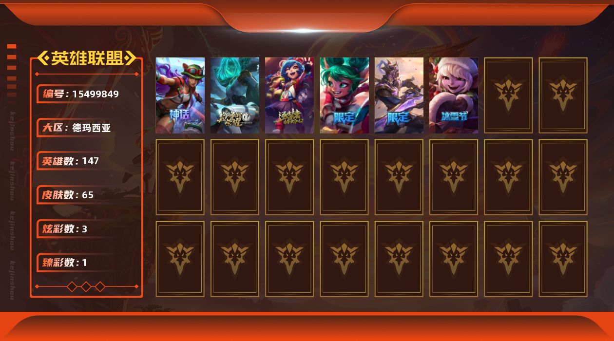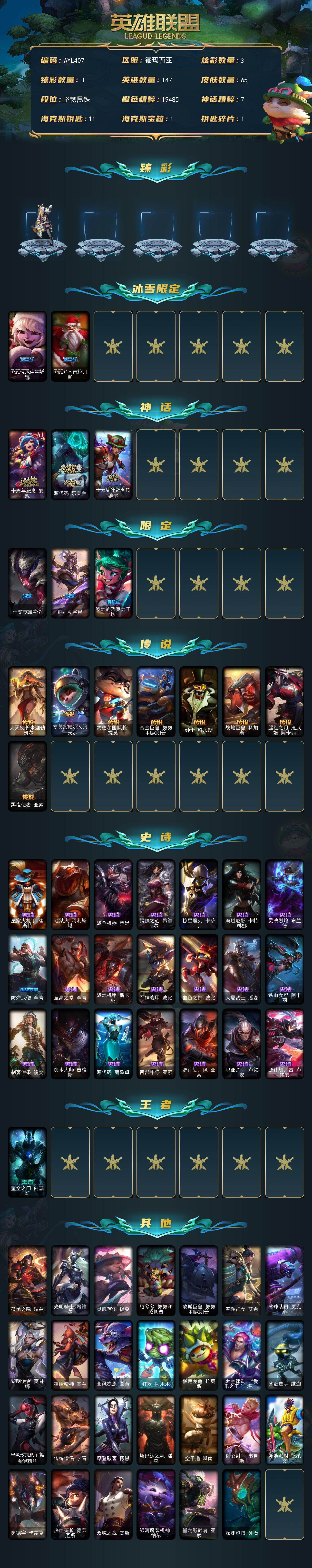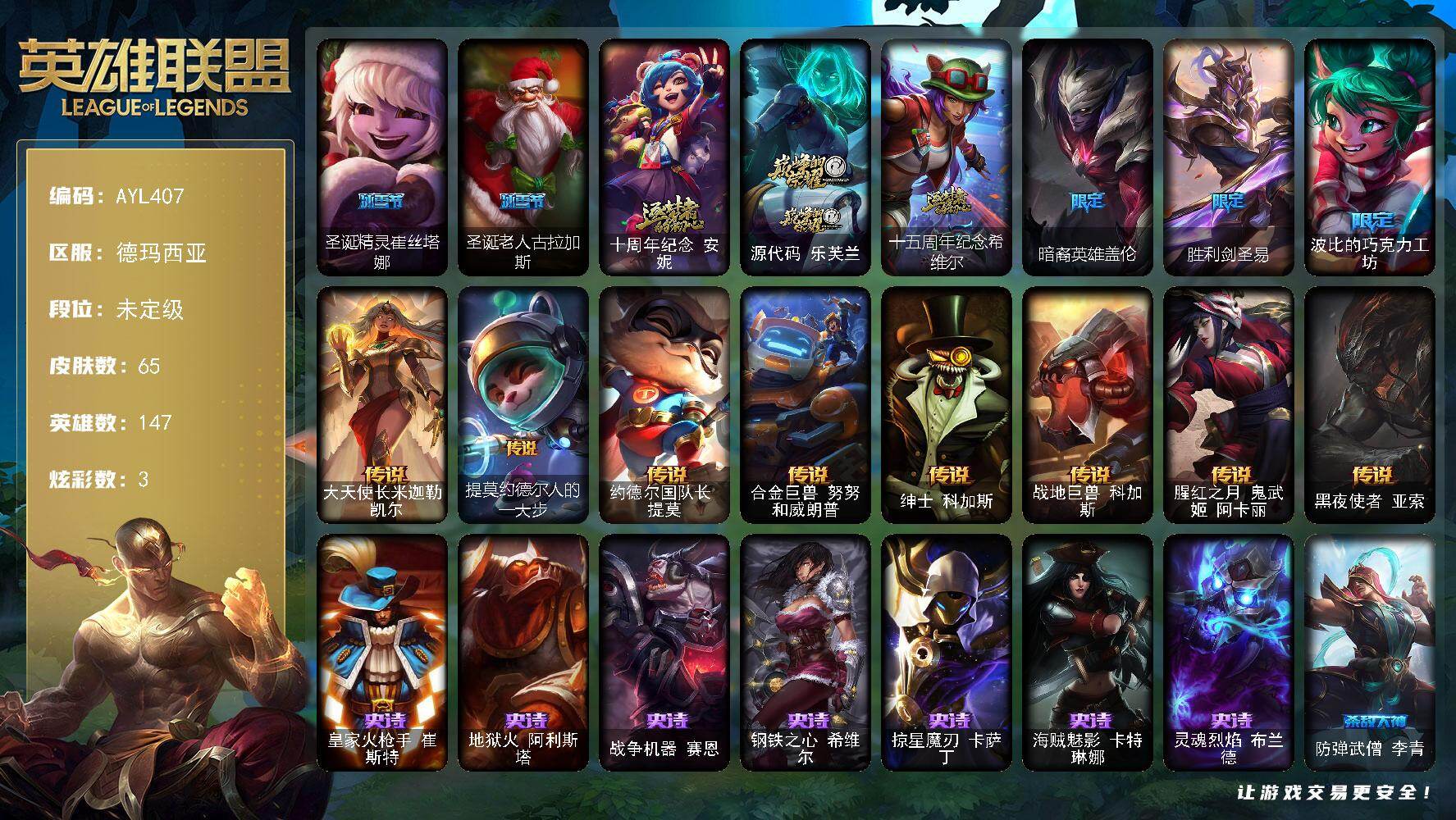 [15499849]【店主推荐捡漏号】未定级段位-147英雄-65皮肤-3炫彩-0终极-3神话-5限定-8传说-21史诗
