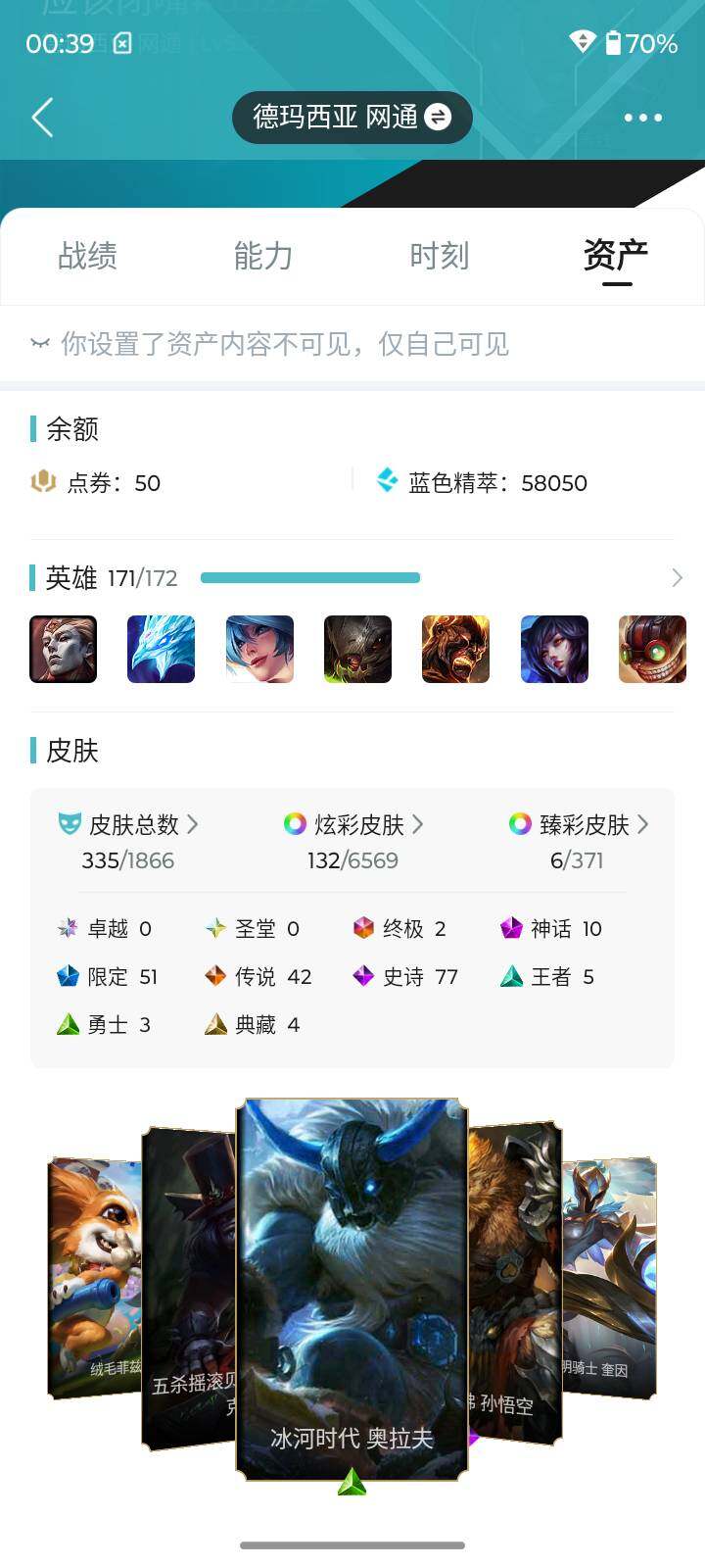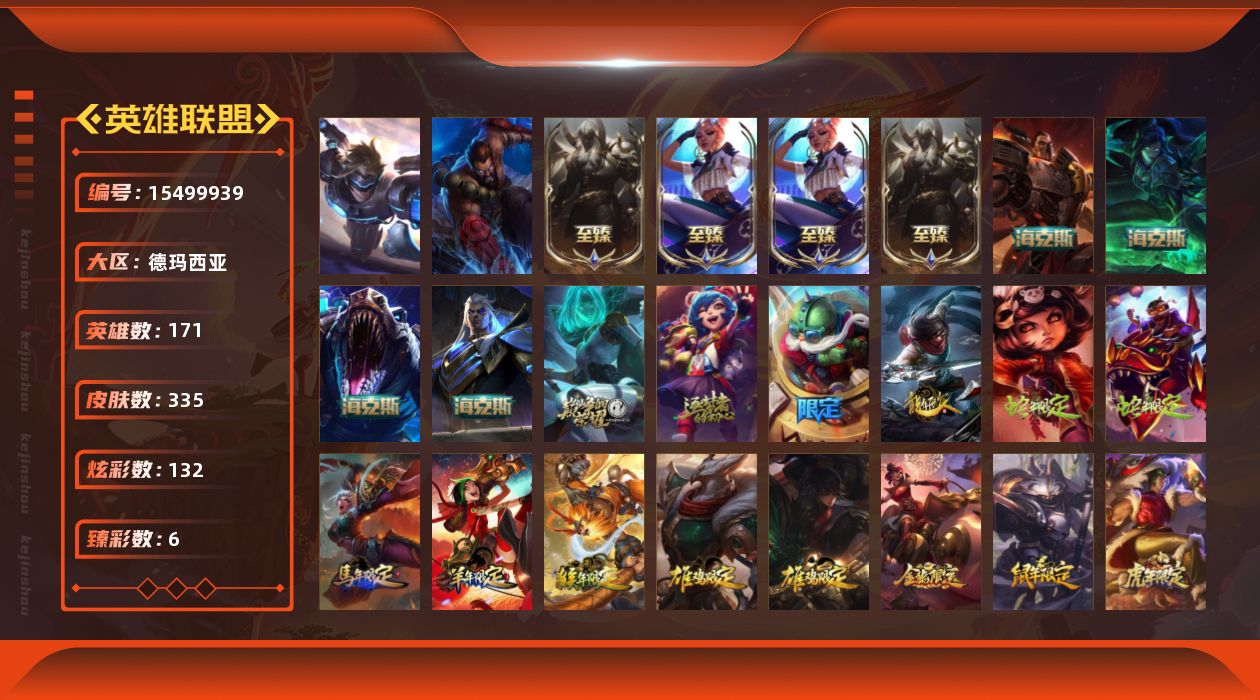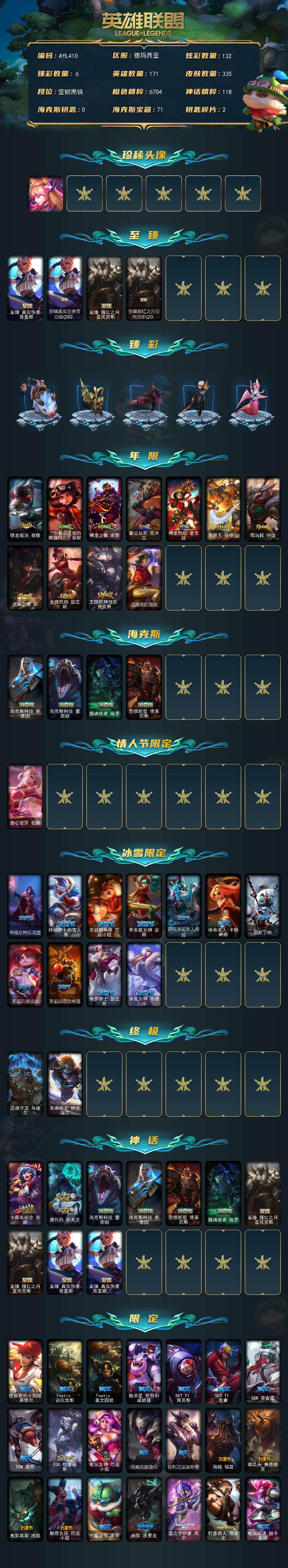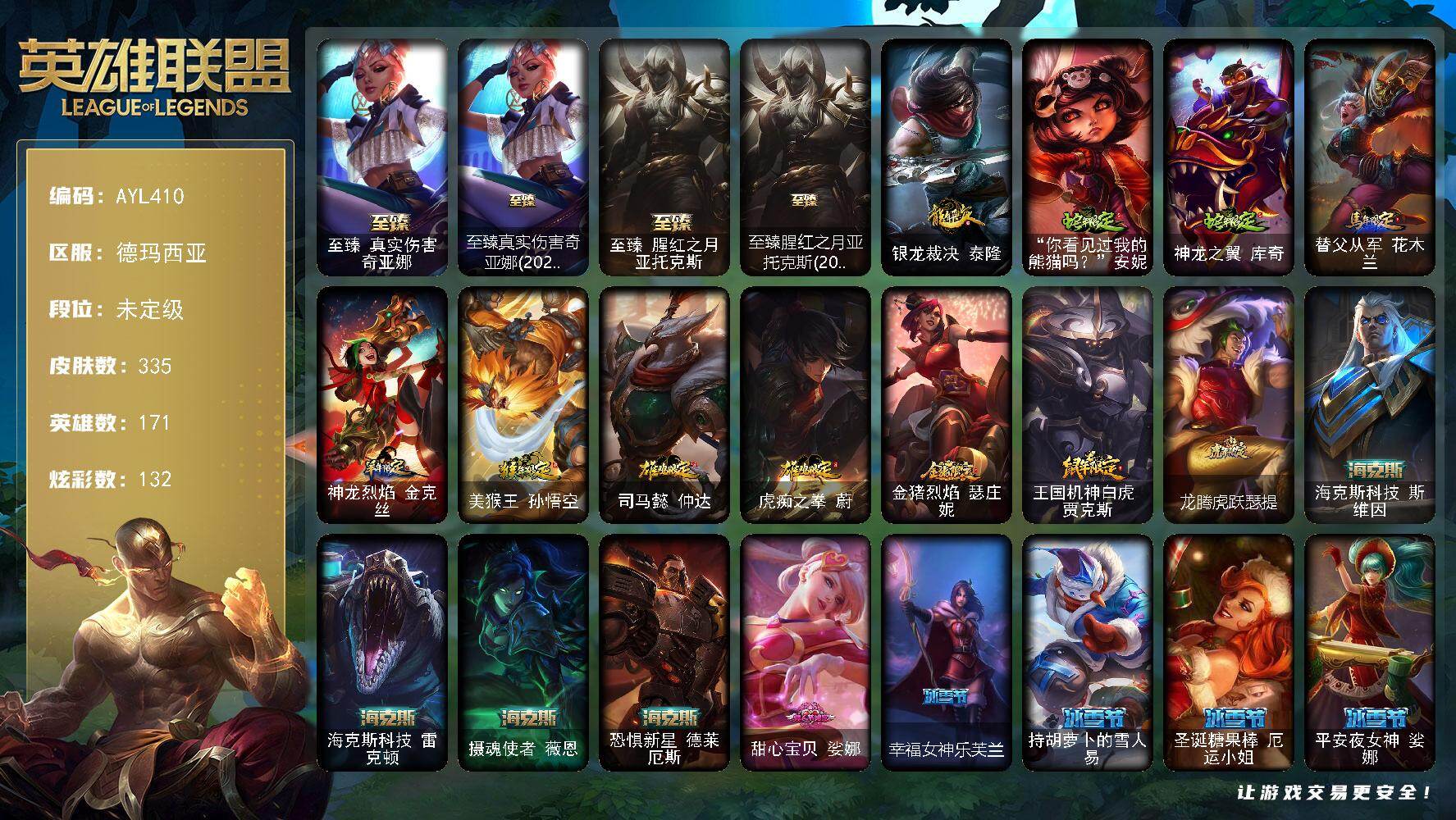 [15499939]【店主推荐捡漏号】未定级段位-171英雄-335皮肤-132炫彩-2终极-10神话-51限定-42传说-77史诗