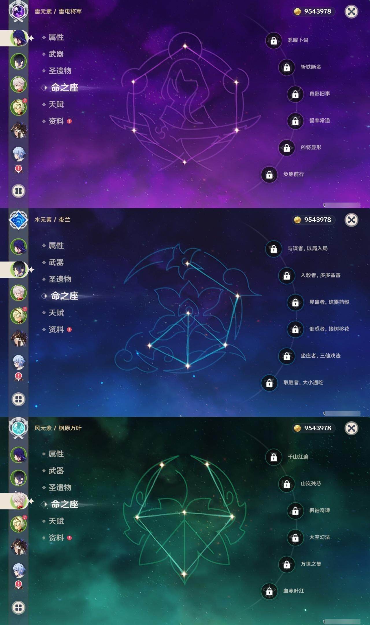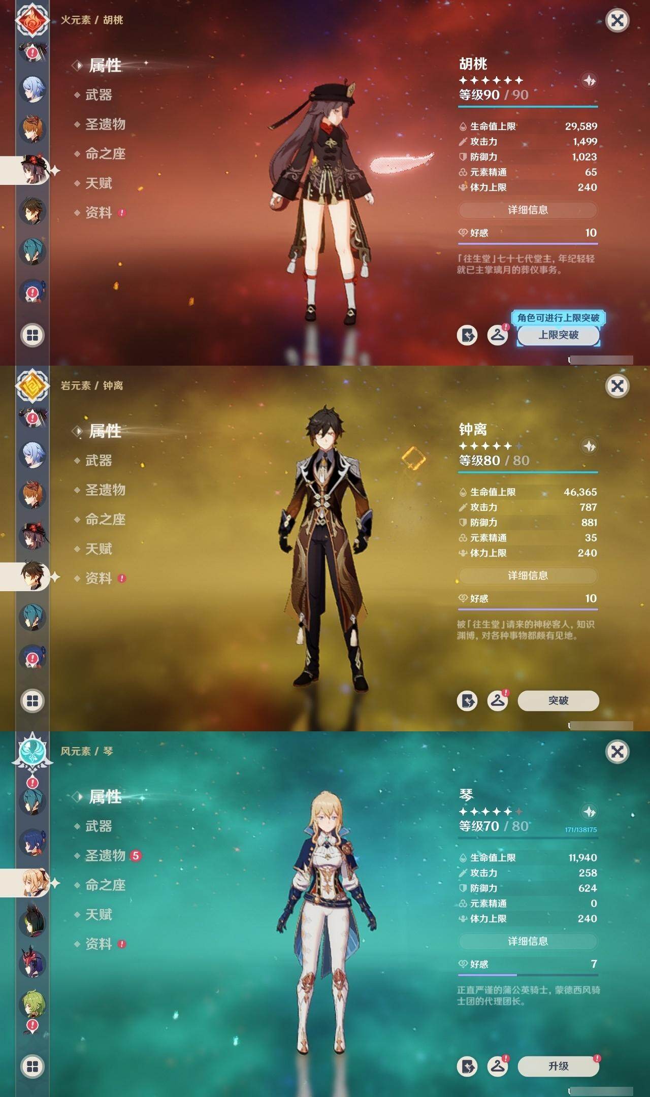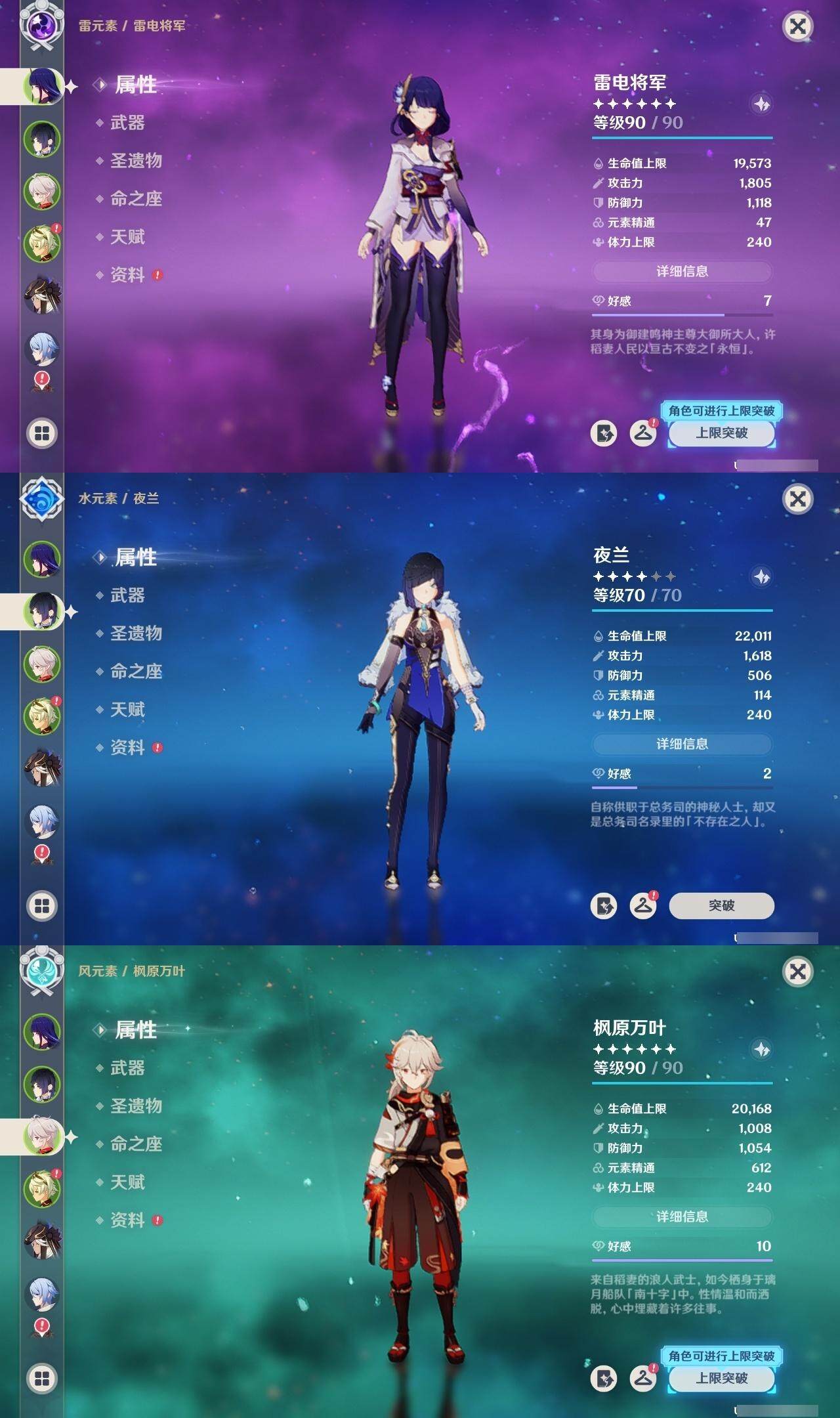 雷电将军,枫原万叶,达达利亚,胡桃,钟离,琴,莫娜,七七,刻晴,迪卢克